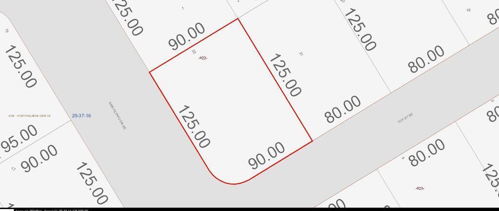 Rare opportunity! Prime 90125 city water corner lot in SE Palm Bay, a rapidly expanding area. Close to major retail hubs and top schools like Odyssey Charter elementary, middle, and high school. Easy owner financing with 20% down. Choose from our extensive inventory of 600 lots. Price is firm; no offers, please. Office addendum required with contract and financing terms included in Docs. Don't miss out on this ideal investment opportunity!