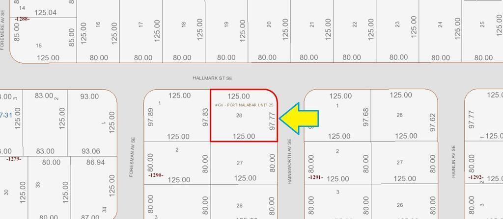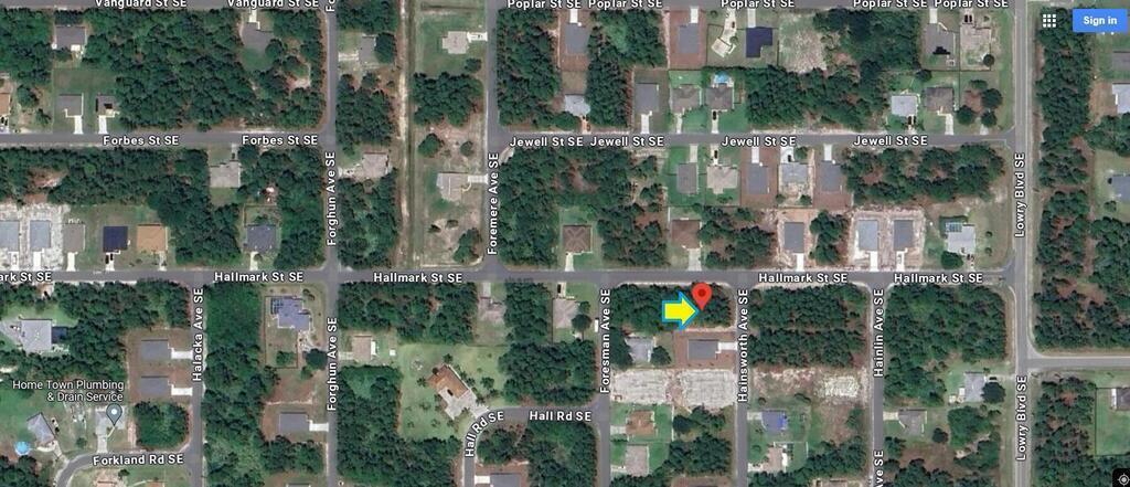 0.28 acre buildable residential corner lot available in Port Malabar Unit 25 of Palm Bay. Located in the southeast section, this lot is just 3.6 miles - 7 minutes to Westside Elementary School, 3.9 miles - 8 minutes to the Publix Supermarket, 14.1 miles - 30 minutes to Melbourne Airport, and 19.1 miles - 32 minutes to the beaches of Indialantic. From exit #173 of I-95 go west on Malabar Road for .2 miles, left on San Filippo Drive for 6.3 miles, left on Lowry Boulevard for .5 miles, right on Hallmark Street for .1 mile to Hainsworth Avenue. The lot will be on your left at the southwest corner with Hallmark.