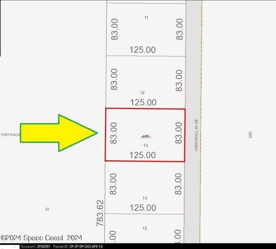 It's a buildable single family residential lot with Rs2 Zoning available in Port Malabar Unit #15 of Palm Bay. Nicely located in the SE section near Bayside Lakes and the PGA Majors Golf Course, this lot is just 3.3 miles -8 minutes- to Publix Shopping, 4.7 miles -10 minutes- to Bayside High and Westside Elementary Schools, 2.0 miles -6 minutes- to the Shoppes of Palm Bay, and just 14.3 miles -24 minutes to the beaches in Indialantic. From Exit #173 of I-95 go west on Malabar Road. Turn left on San Filippo Drive SE and proceed south for 1.2 miles. Turn left on Foundation Park Boulevard SE and right on Underhill Avenue SE. The lot will be on the right side of the road.
