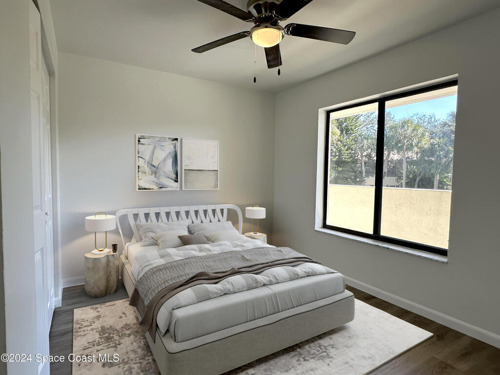 Beachside retreat! Fully remodeled! MOVE IN READY unit - with new flooring, new kitchen with quartz counters, updated bath, new HVAC and water heater. Everything feels shiny and new, ready to be your HOME SWEET HOME. Step onto the balcony from the dining room or primary bedroom and enjoy a peaceful backyard. Perfect spot for morning coffee or evening relaxation. Two bedrooms and an open kitchen make this a great beach getaway, investment property or cozy place to come home to. Enjoy community amenities including relaxing spa, heated pool, tennis, plus kayak rack and launch, plus bike rack to round out your beachside lifestyle. Located in the the heart of Cape Canaveral. Minutes to the beach, Port Canaveral, and SR528 for a quick hop to Orlando attractions.