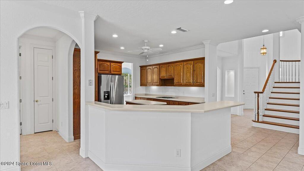 This stunning 2-story WATERFRONT rental, located in the exclusive area of South Tropical Trail, features 5 bedrooms, 4 bathrooms, and 4,303 square feet of living space. Enjoy 112 feet of direct Indian River water frontage, a 111-foot dock, and plenty of yard space for outdoor activities. The property also includes a large 3-car garage and an attached apartment that can serve as a game room, movie room, guest suite, or more. High ceilings and a large screen-enclosed back patio make this home perfect for entertaining or relaxing. This property offers easy access to the beaches, Melbourne and Orlando International airports, the Space Center, Cocoa Beach, Brevard Zoo, Viera, and other world class attractions.