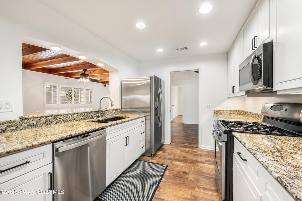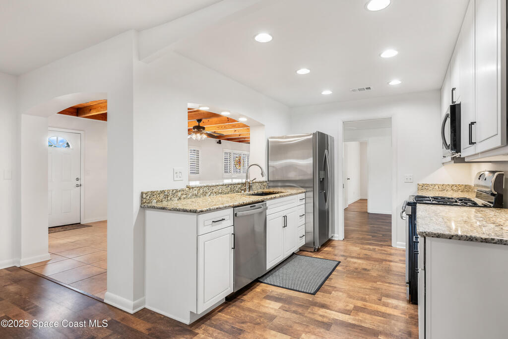 SELLER SAYS ''SELL!'' -- MAJOR PRICE REDUCTION! Freshly painted inside and out, this 4-bedroom 2-bathroom pool home with a heated spa blends modern updates, resort-style amenities and timeless charm in an unbeatable location. Completely turn-key and moments from the beach, Port Canaveral, great restaurants, shopping and entertainment, it's a true gem in one of Florida's most iconic coastal towns -- and an excellent option for a vacation or investment property. Inside, an open and bright floor plan offers comfortable living and easy entertaining. The spacious family room features beautiful exposed wood beams and abundant natural light that highlights the home's updates and care. The remodeled kitchen includes white cabinetry, granite counters, an under-mounted sink, LED lighting, stainless steel appliances and natural gas cooking. Updates include impact glass, shutters, instant water heater and more. Opportunities like this don't last. Schedule your showing today.