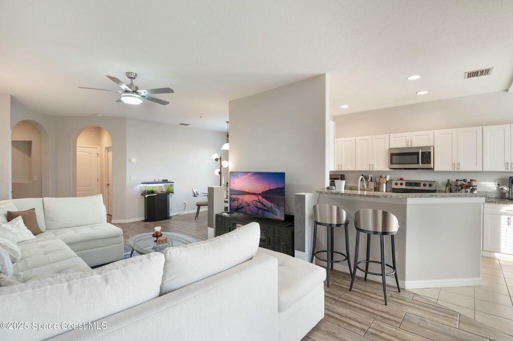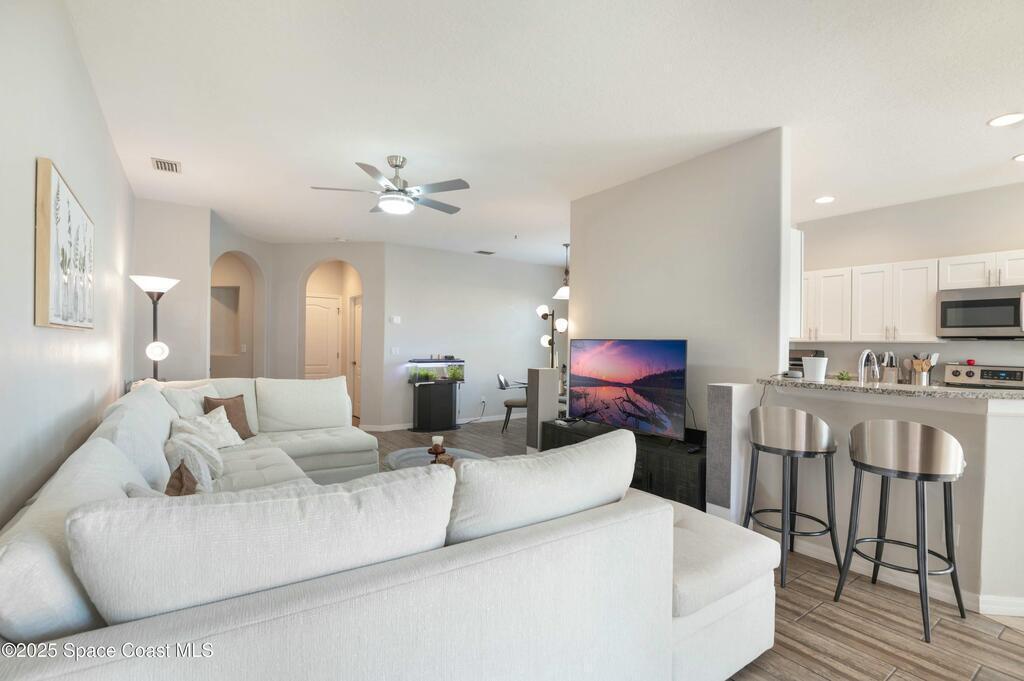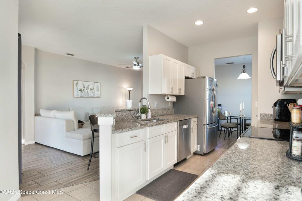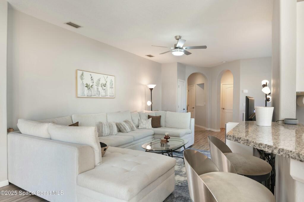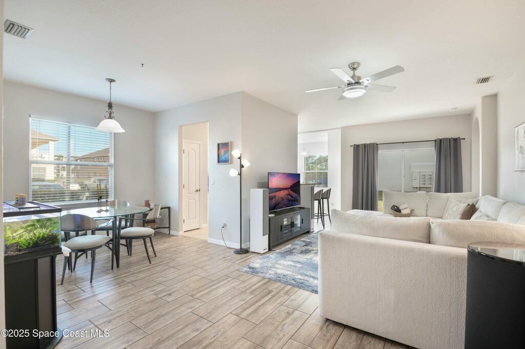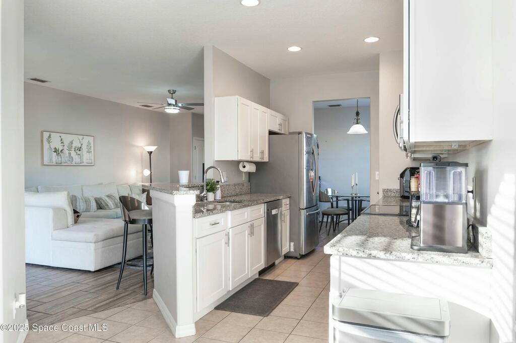 *Motivated Seller* Single-story convenience, end-unit privacy, and extra parking--this 3-bedroom ground-level condo delivers more than expected, inside and out.The open layout connects a granite-trimmed kitchen to a bright living area with upgraded lighting and durable flooring. The corner unit placement allows for added light and fewer shared walls. A covered patio looks onto maintained green space, offering an easy spot to wind down or let pets out.The attached garage includes direct entry to the unit, and the extended driveway fits a second vehicle comfortably--rare in this community. All bedrooms are set apart from the living space, with the primary offering a walk-in closet and en-suite bath. Washer/dryer hookup inside.Venetian Village residents enjoy a community pool and walkable layout with low monthly fees. Located just off Dairy Road, you're minutes from shopping, restaurants, Melbourne schools, and a straight shot to the beach.Clean lines. Smart layout. Nothing wasted.