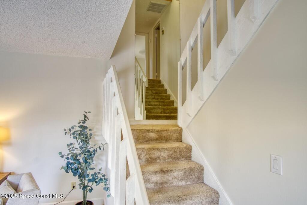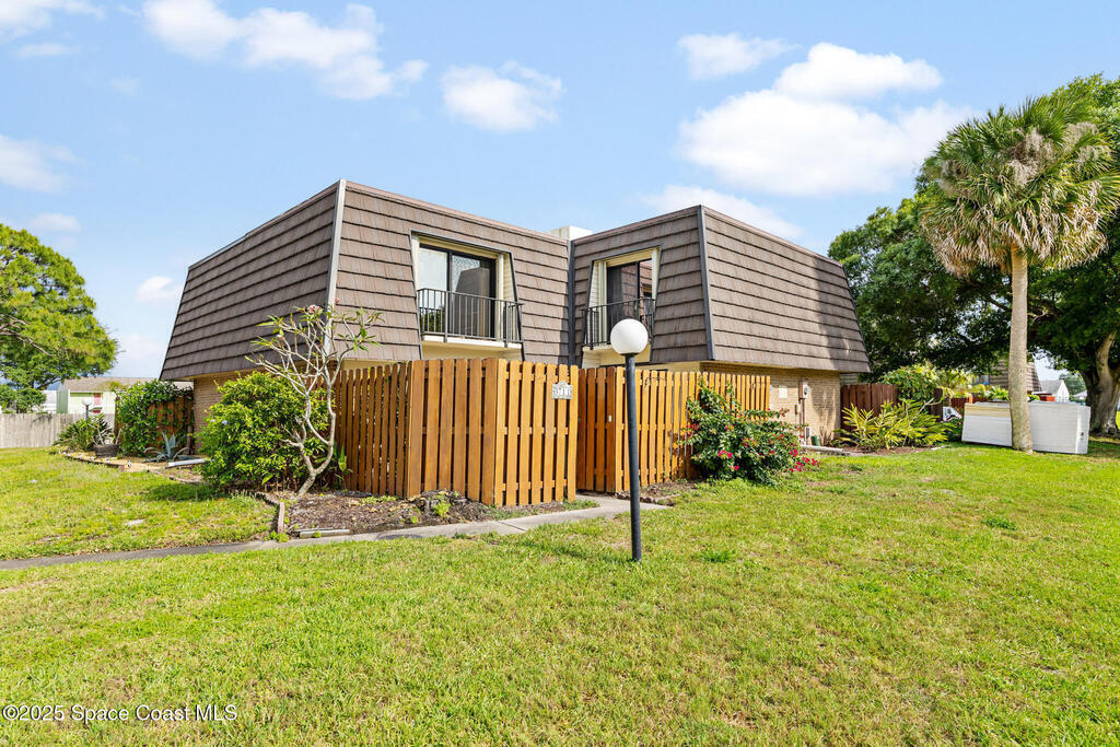 New SILICONE COATING ON ALREADY GREAT ROOF! FRESHLY PAINTED INTERIOR! HOA fee includes water, cable, internet & lawncare! Welcome to this quaint townhouse WITH PRIVATE COURTYARD in the center of NE Palm Bay located in the well-established neighborhood of Vista Oaks. Enjoy two assigned parking spaces and ample guest parking. Move in ready, immaculate condition with a newer kitchen and bathrooms and all tile and laminate flooring except stairwell. Well-maintained property that was used as a winter home for many years. Enjoy the private, courtyard patio and upper balconies for bird viewing & sunsets. This property comes with all appliances including the washer (brand new) and dryer. NEW ACCORDIAN HURRICANE SHUTTERS FOR BOTH SLIDING GLASS DOORS ON THE SECOND FLOOR. Come and enjoy this property which is nicely located near all NE Palm Bay has to offer and is a short drive to the beach too.