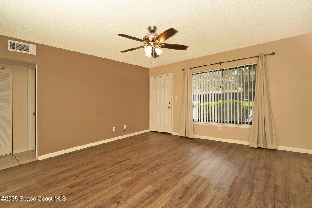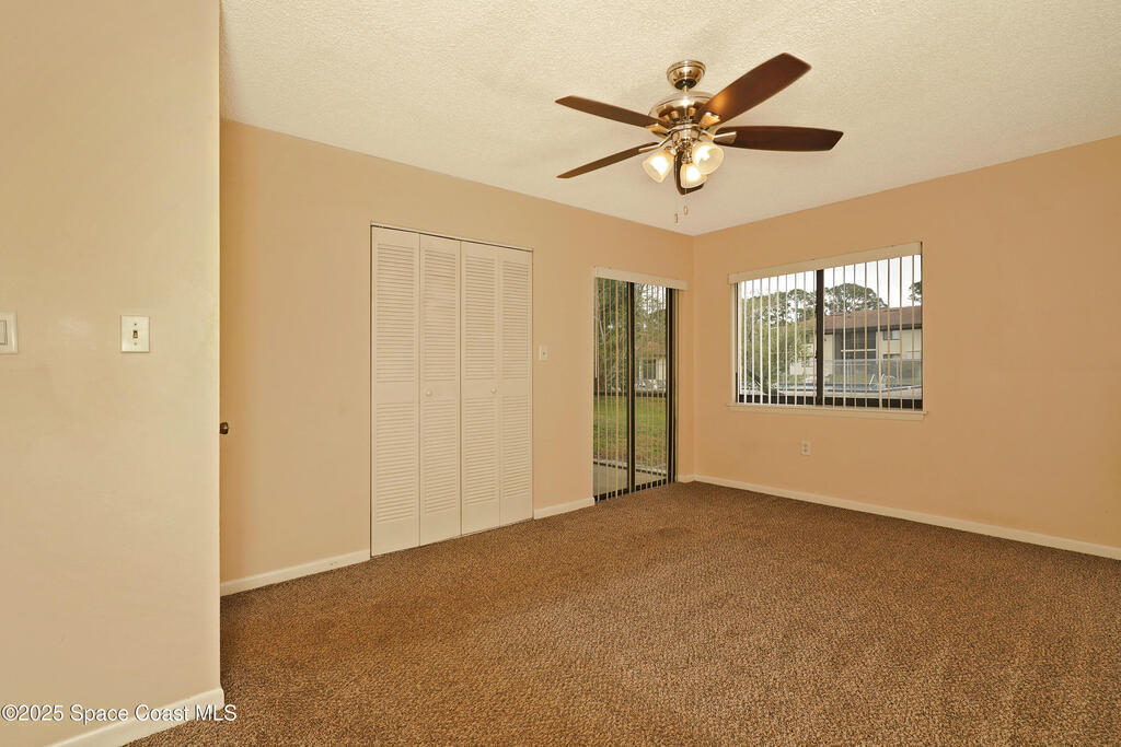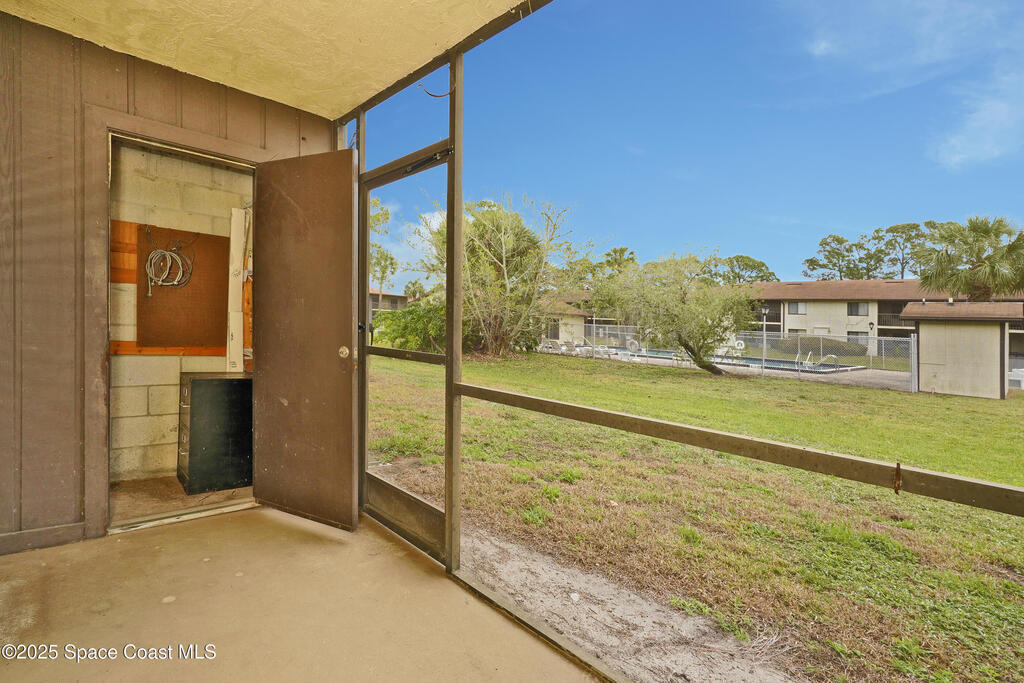 $10K PRICE IMPROVEMENT - GROUND FLOOR, 2 bedroom, 1.5 bath, Rockledge unit that has an open plan for you and your family. The living room is roomy with a large window with blinds and most of the rooms have ceiling fans. The bedrooms have a great views out the vertical blind covered windows with the master having a view of the pool area and slider to the patio. The kitchen has wide counters and electric appliances and there's a breakfast area with glass front cabinets. There is a laundry closet in the kitchen and a locking storage closet in the screened patio. BRAND NEW WINDOWS. The common area behind the unit you will find a community pool, tennis courts and shuffleboard. Adjacent to the complex is the McLarty Park and Community Sports Center with kids playground, covered picnic area and basketball courts, baseball diamonds, tennis courts and pool, just a short walk from the unit. This unit is close to schools, churches, restaurants and shopping, Just a short 10 mile drive to beaches