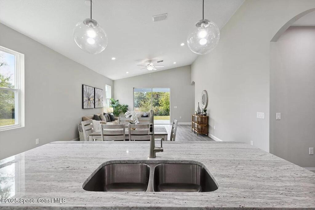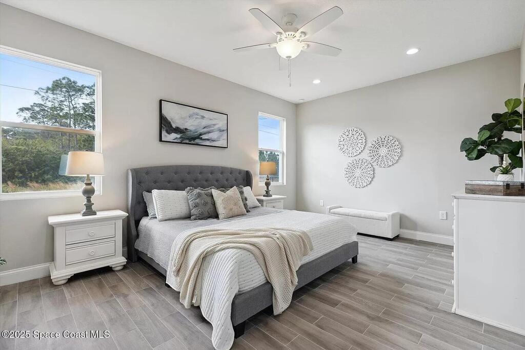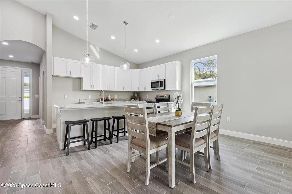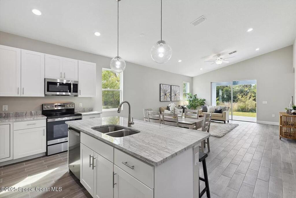 FLEX CASH AND NO CLOSING COST LOANS AVAILABLE. One or more photo(s) has been virtually staged--New Construction. This Luxurious 4-bedroom, 2 Bath Property is exquisitely built with all of the upgrades nestled in the heart of Palm Bay. Inside you will find a wonderfully open floor plan perfect for gatherings and entertaining. The capacious Chef's Kitchen is stylishly equipped with an island, solid wood cabinets, stainless steel appliances and ample storage. The contemporary living space is bursting with natural light and a flowing layout that is inviting and relaxing. Luxuriate in the vast Primary Suite that offers a collection of modern conveniences. This beautiful house is full of INCLUDED upgrades: solid wood soft close cabinets in the kitchen and in the bathrooms, luxury vinyl plank flooring (no carpet), and floor-to-ceiling tiles in the showers, bathroom niches, granite countertops in the kitchen and baths, 9'4'' ceilings, 8-foot doors, luxury handles, and an electric garage.
