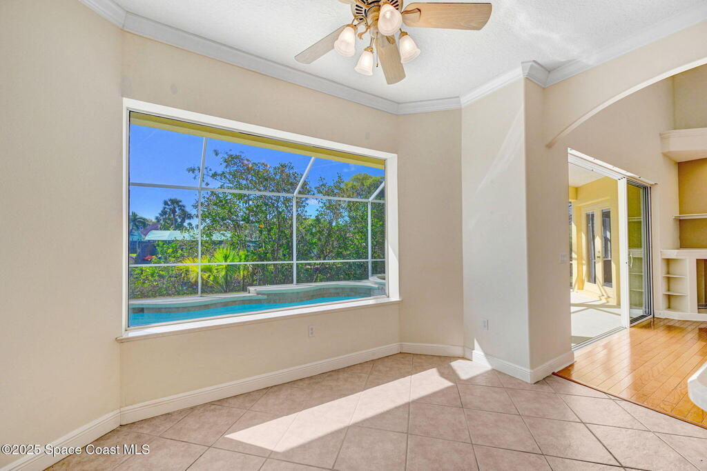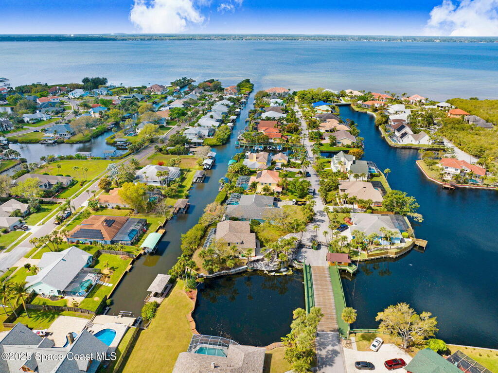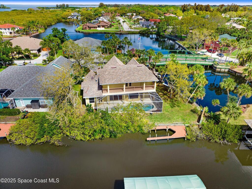 Drastically reduced! Prestigious gated River Moorings! This custom home boasts 24 ft ceilings in the great room accented by a gas fireplace, wood floors & triple sliders to the pool! Spacious kitchen offers a large picture window nook overlooking the water & pool! Primary 1st floor bedroom w/ views of the pool plus a luxury spa bath! Upstairs includes 3 large guest bedrooms, full bath, comfortable loft overlooking the great rm + a cozy library! Screened heated pool & jacuzzi w/ plenty of entertaining area! Serene waterfront setting on a navigable canal that leads directly to the Indian River (no bridges)! Large balcony upstairs for your morning coffee or evening cocktails! See virtual dock picture attached! Mangroves just received 1st trimming - allowed to cut them to 6ft from the water line! This home has so much natural light! Additional features include crown molding, transom windows, central vacuum, full sprinkler system & newer kitchen appliances!