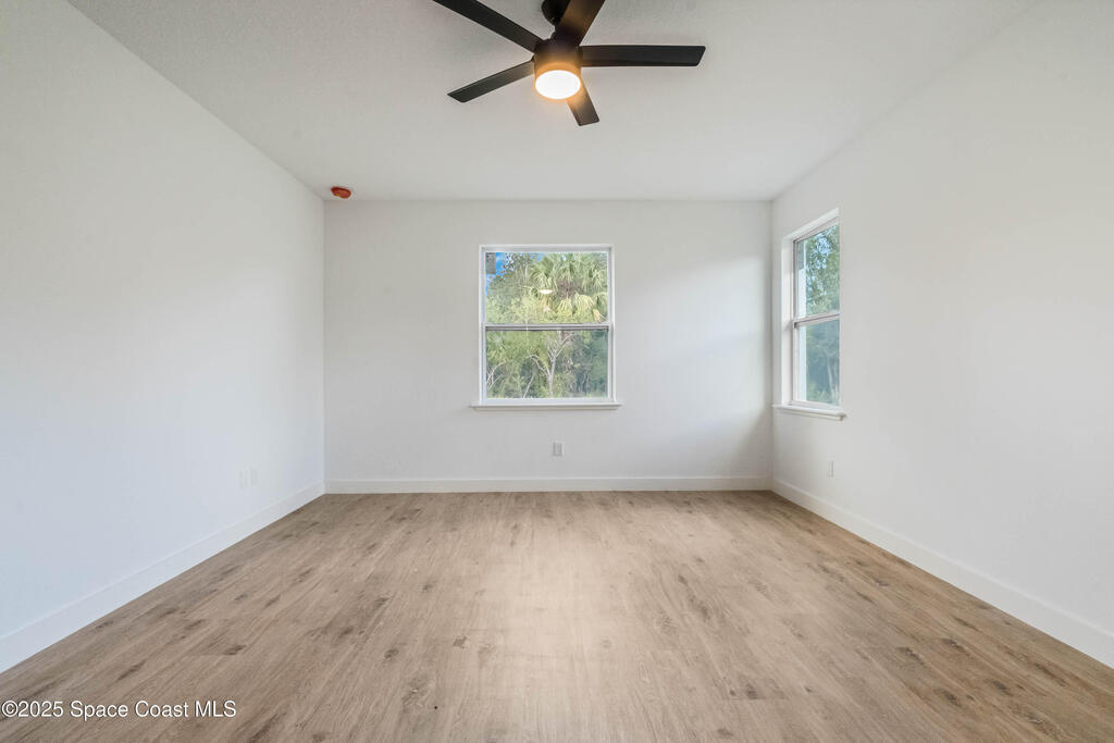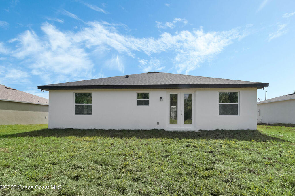 This new 4-bedroom, 2-bathroom home in Palm Bay, Florida, offers 1,800 square feet of modern comfort. The open-concept layout features a spacious kitchen with quartz countertops, floor-to-ceiling cabinets, and a large island. Rustic wood-finish beams add warmth to the inviting living area. The split floor plan ensures privacy, and the two-car garage provides ample storage. Enjoy the benefits of new construction--roof, HVAC, plumbing, and electrical--built for efficiency. Located in a quiet, HOA-free neighborhood, it's minutes from shopping, dining, beaches, and major highways.