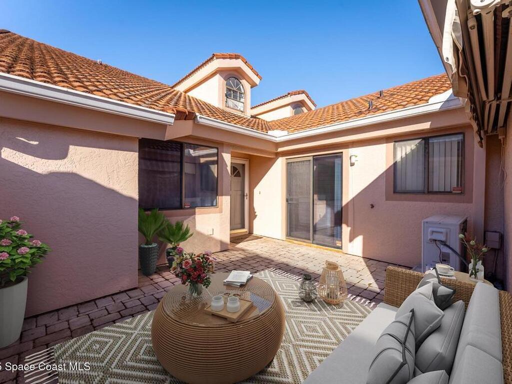 NEW PRICE! Motivated seller--bring your offers! Charming Mediterranean townhome in the desirable La Cita Golf Community of Titusville. Enjoy peaceful golf-course views, soaring ceilings, 2 beds / 2 baths, a cozy sun porch, and a private paver courtyard with retractable shade. Recent updates include full interior repaint (July 2024), new luxury vinyl flooring, fresh carpet, and a high-efficiency HVAC (2022). Conveniently located near beaches, Merritt Island Wildlife Refuge, Orlando Int'l Airport, Port Canaveral, and Disney Parks. Move-in ready--don't miss this opportunity!