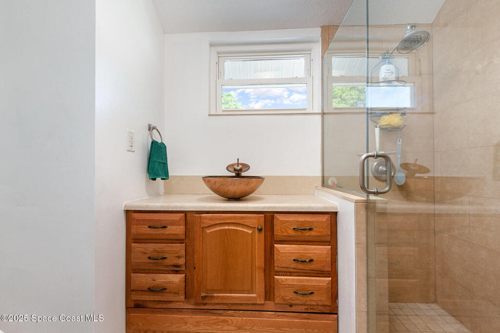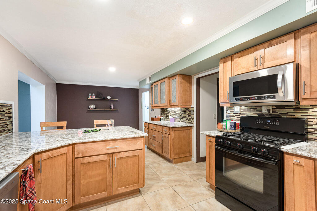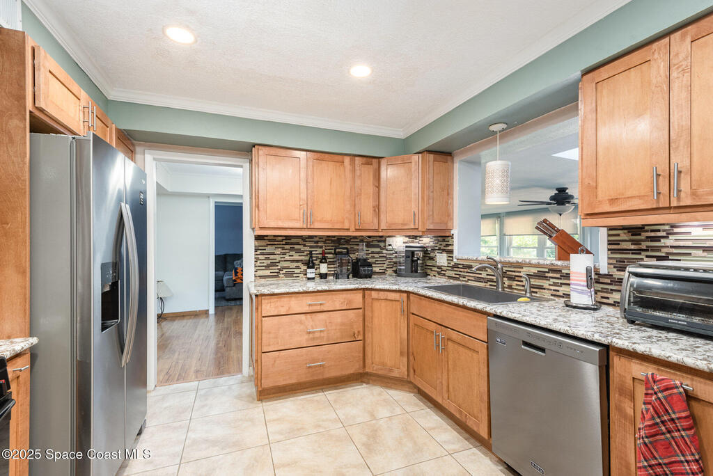 The home that has it all! 4 bedrooms, 2 full bathrooms, 2 car garage, on approximately 1/2 acre corner lot. Inside this beautiful concrete block home you will find updated flooring, remodeled kitchen including cabinets, granite tops, appliances, New energy efficient windows. The hall bath has been updated and is complete with a Jacuzzi tub, the master bathroom has also been updated and includes a glass enclosed shower. Other recent upgrades include the HVAC System and water heater. You will enjoy the convenience / ambiance of the electric fireplace in the living room. Outside you will find a spacious yard with a well maintained irrigation system with new well pump. Enjoy sitting on the back deck with pergola. Also in the backyard is a massive Mango tree, with plenty of room for RV, Boat, Trailer storage, a 12x25 outbuilding,, and a storage shed as well. Convenient access to I-95, SpaceX, Blue Origin, NASA, ULA, rivers, beaches, and all the great surrounding attractions.