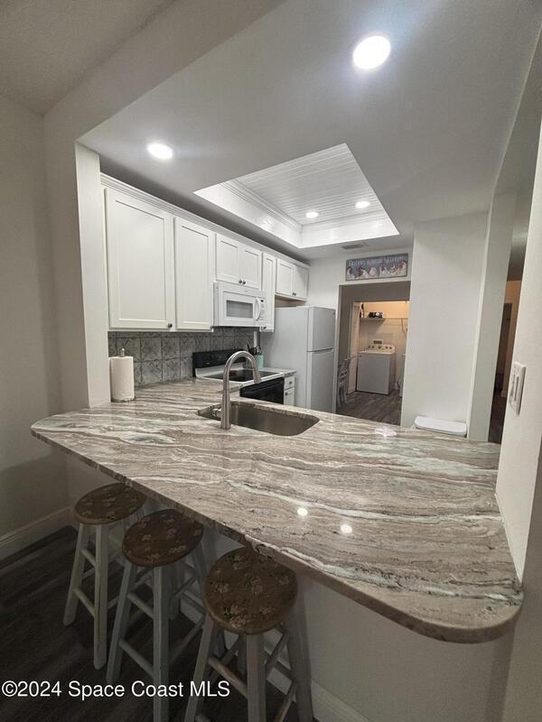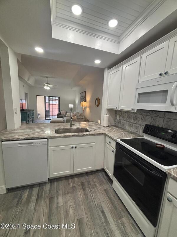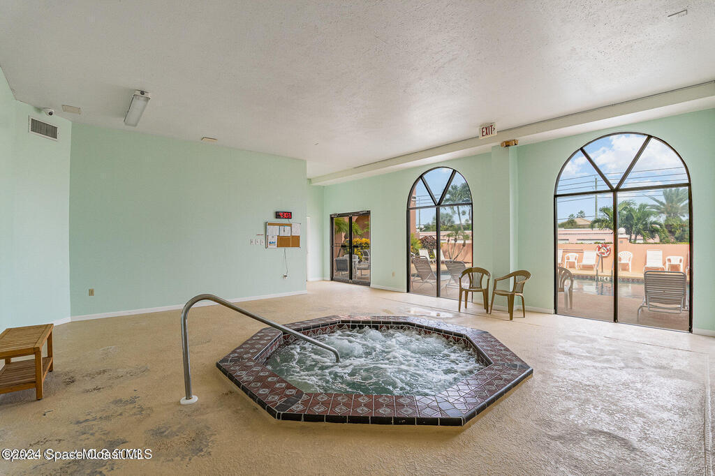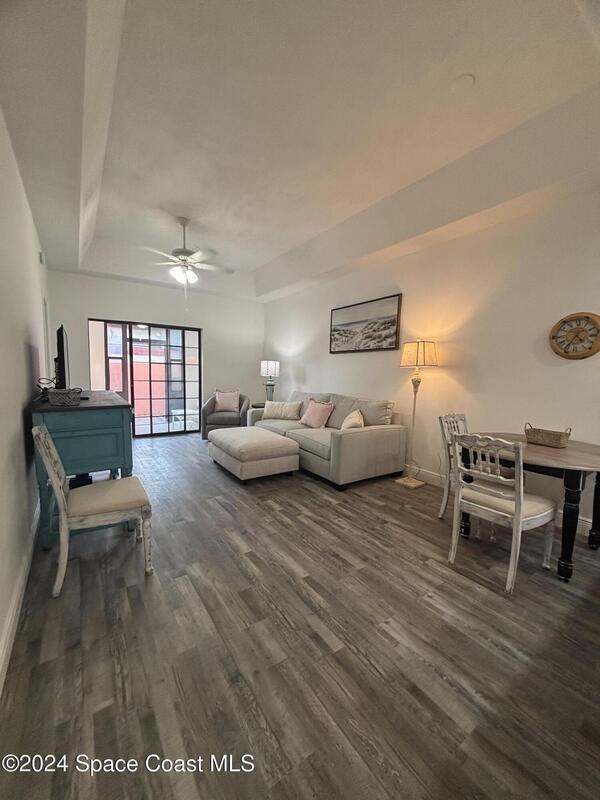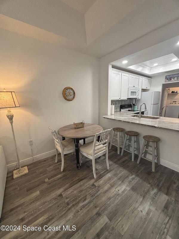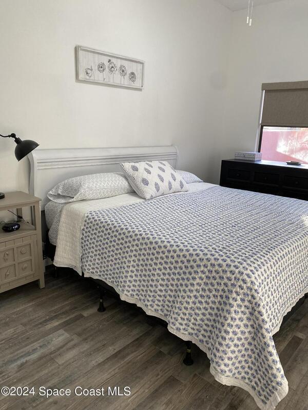 Available Jan 2026!! Welcome to the neighborhood!! 7 blocks south of Downtown Cocoa Beach!! This beautiful fully furnished remodeled condo is freshly painted with new flooring, remodeled Kitchen and bathrooms. This condo is decorated with all new furnishings! The enclosed patio with newer windows allows for more living square footage under air. Amenities include a beautiful pool, hot tub and sauna! Just steps to the ocean and 2 blocks to the community center, pickle ball courts, boat ramp, dock, park, and tennis courts, Downtown Cocoa Beach is 7 blocks and offers fun restaurants, pubs, fine dining, coffee shops, bakeries, Iconic beachfront dining, festivals, boat and airshows and more!! All utilities included! HOT TUB, SAUNA AND POOL!!