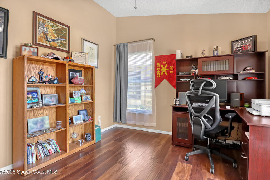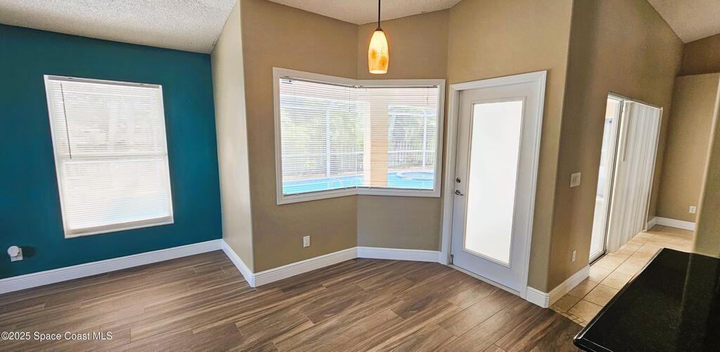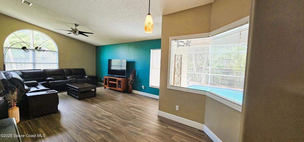 INCREDIBLE VALUE ON THIS 4 bedroom, 3- bath home with an additional LARGE FLEX ROOM now at unheard-of-pricing perfect for new buyers to bring their vision and add to the already upgraded features. CENTRALLY LOCATED near L3Harris, Historic Downtown Melbourne, Malls, Airport and Restaurants. With over 2500 sq. ft. of versatile living space, this home offers the perfect balance of comfort, style, location and functionality. Step inside to an inviting open floor plan that flows seamlessly from the formal living and dining areas to the family room, all filled with natural light from large windows and triple sliding glass doors opening directly to the screened saltwater pool and patio with its own pool bath entry, perfect for entertaining or enjoying Florida living year-round. The kitchen is designed to impress with granite countertops, tall dark-wood cabinetry and a convenient desk/message center. A casual dining nook