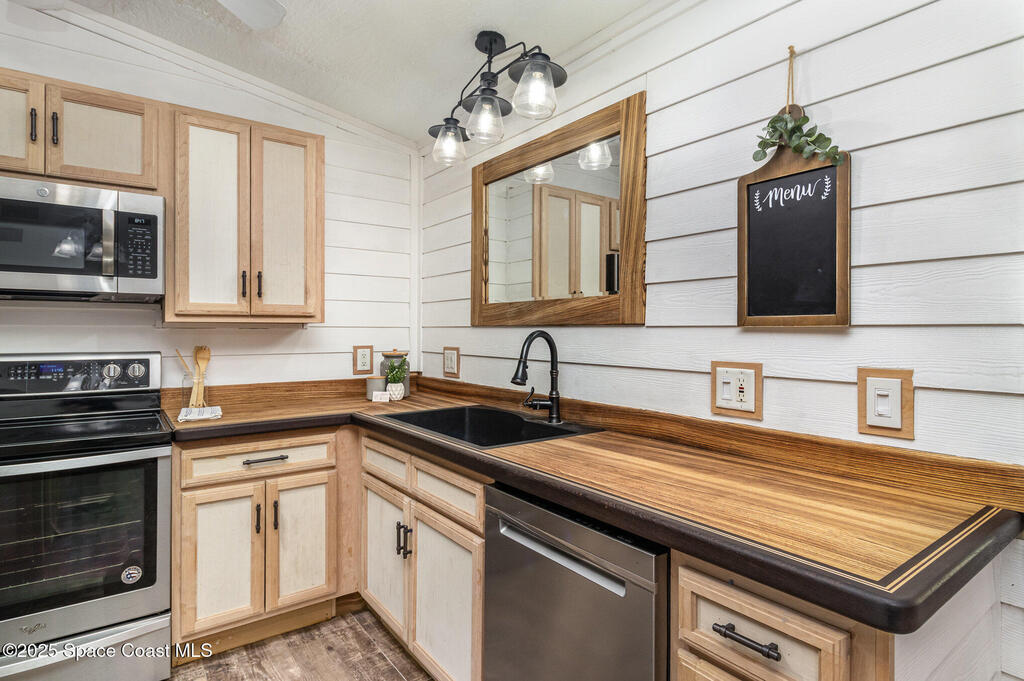 . Located in the rapidly growing city of Palm Bay, this meticulously remodeled home blends modern luxury with functionality. Built with solid block construction and impact-rated windows, it ensures durability and security. The open floor plan features a spacious great room that separates the expansive master suite from the three additional bedrooms and bonus room. Custom woodwork and stunning finishes throughout, including Zebrawood and Wenge countertops, elevate the design. The kitchen boasts a large island with a veggie sink and ample space for a dining table. The master suite offers a generous walk-in closet, a curbless shower with beautiful tile and stone finishes, and plenty of space to unwind. Additional features include a butler's pantry and walk-in pantry for extra storage. The home owner is also selling a 0.27-acre lot of land behind the home which can be purchased with this listing, bringing the total combined acreage to 0.51 acres--offering incredible potential for expansion