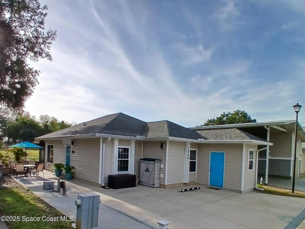 This resort home on the golf course is move in ready with recently updated appliances, AC and full house water treatment system. The screen lanai overlooks the golf course with a perfect view of rocket launches! One bedroom and one and a half baths with a bonus room for office, TV or guests attached to the half bath. There is plenty of parking for your vehicles and golf cart. An attached exterior storage building for tools or bikes. There are well kept planter gardens and an outside patio area by the lanai. This active 55+ community has an executive golf course on property, gated entrance, clubhouse, heated pool, pickleball, tennis and more. Close to beaches, airports, theme parks, shopping and restaurants.