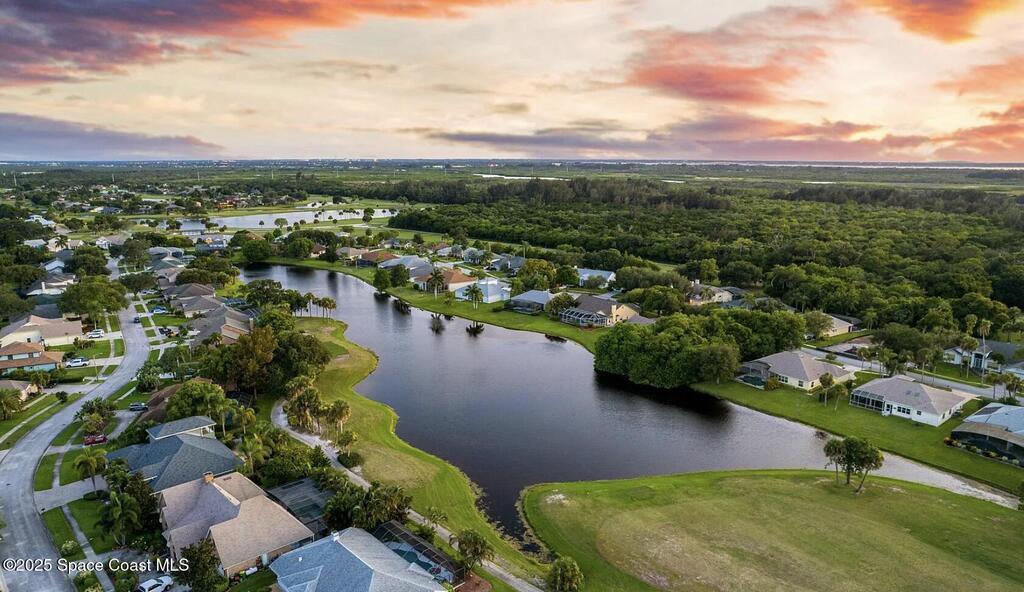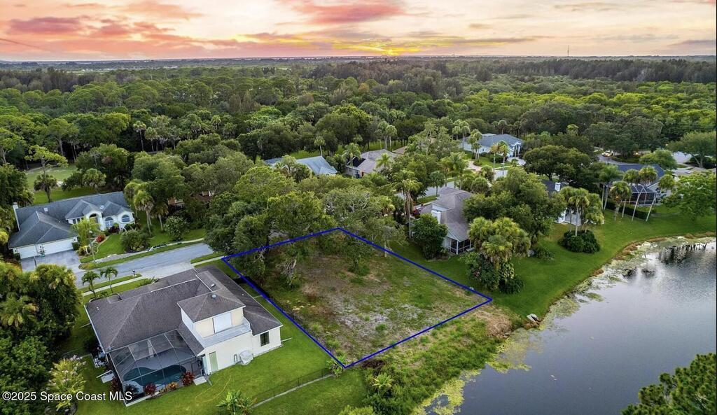 Own a slice of paradise in this golf course community! One of few remaining vacant lots left in the highly esteemed Savannahs Golf Course Community in North Merritt Island. This .26 acre waterfront lot has 90' of waterfront footage that backs up to a wooded private landscape just on the other side of the golf course. Lot is partially cleared, high and dry. Oak trees were left so new owner could decide which to keep. Previous soil compaction test and survey available upon request. Natural gas and reclaimed water available. With a minimum 2,000 SqFt under air required in The Savannahs. Minutes from KSC, blue origin & space X. Close to the beach & 45min to MCO airport. Buyer responsible for all due diligence.