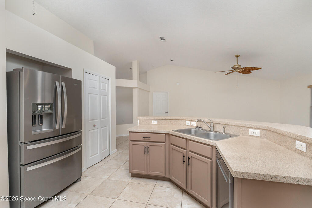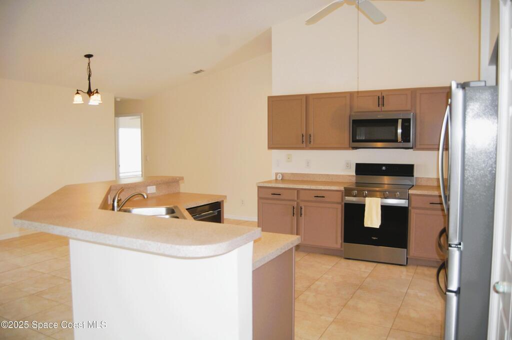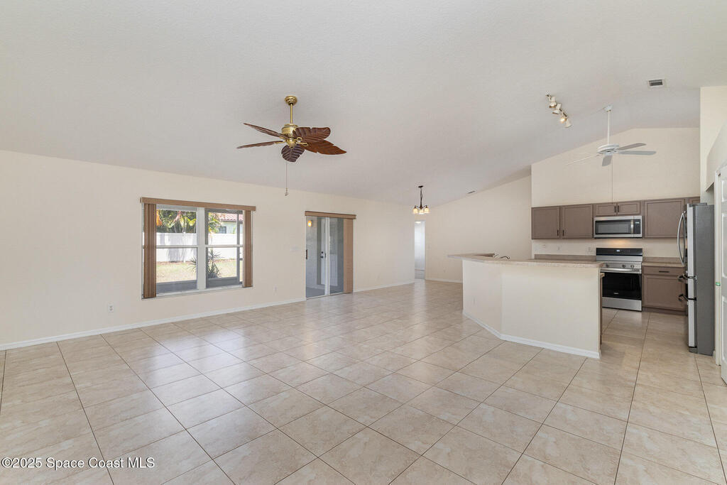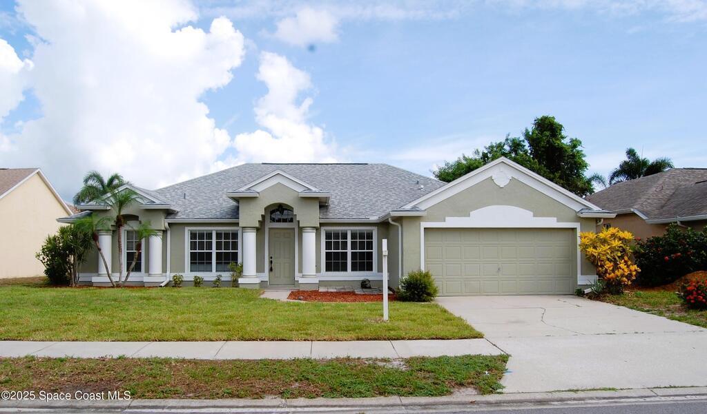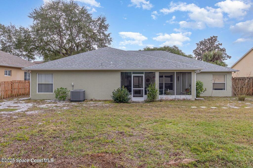 4BR 2BA home nestled on a quiet street in the SUNRISE subdivision. Home has had popcorn ceilings removed and was freshly painted inside. All new high end appliances, new vinyl flooring in all bedrooms, new light fixtures and newly painted cabinets. Best of all, ALL NEW STORM SHUTTERS! The open floor plan creates a spacious area for entertaining. Huge breakfast bar ideal for casual dining or meal prep while staying connected with the family. Formal dining and living rooms add a touch of elegance. Screened covered porch is great for enjoying fresh air and a constant breeze. Family oriented neighborhood close to schools, parks and community activitiesThere is even a park and playground right in your neighborhood. Close to all that the growing Viera has to offer. Convenient to Orlando Airport, Patrick Space Force Base, Brevard Beaches and Theme Parks. New sod in front yard planted after tree was removed.