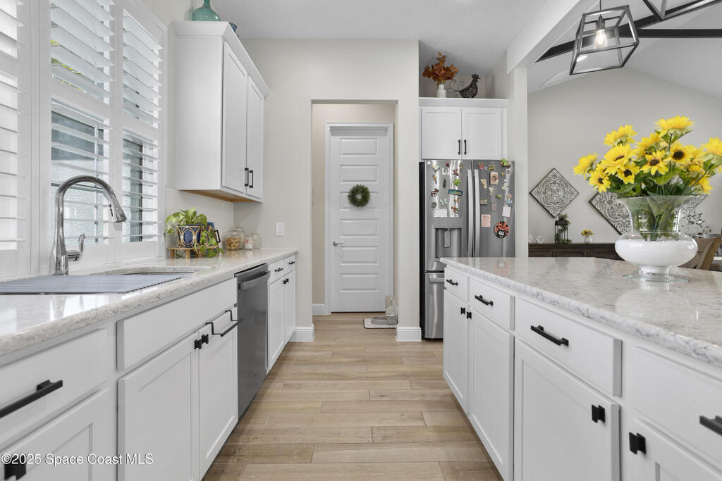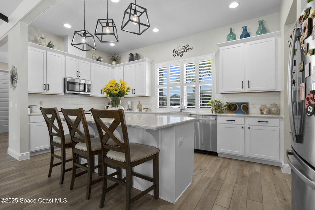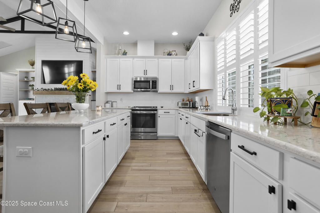 Interior Features: Breakfast Bar, Built-in Features, Ceiling Fan(s), Eat-in Kitchen, Kitchen Island, Open Floorplan, Pantry, Primary Bathroom - Shower No Tub, Primary Downstairs, Smart Thermostat, Split Bedrooms, Vaulted Ceiling(s) and Walk-In Closet(s)