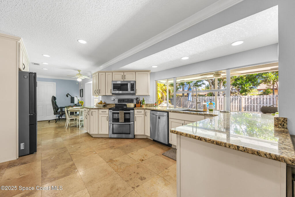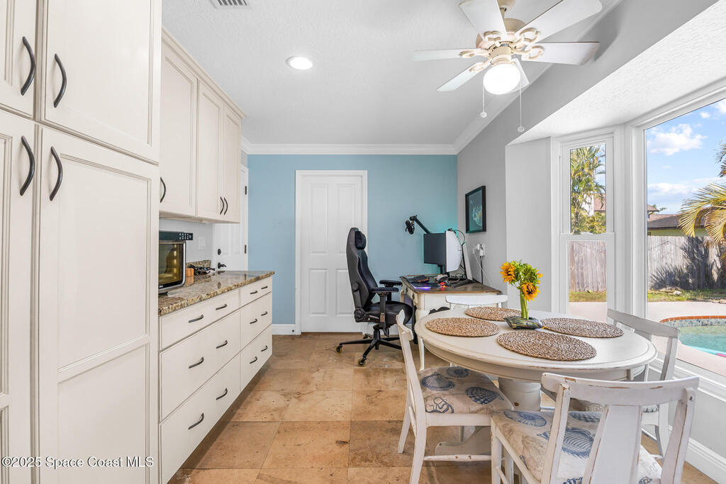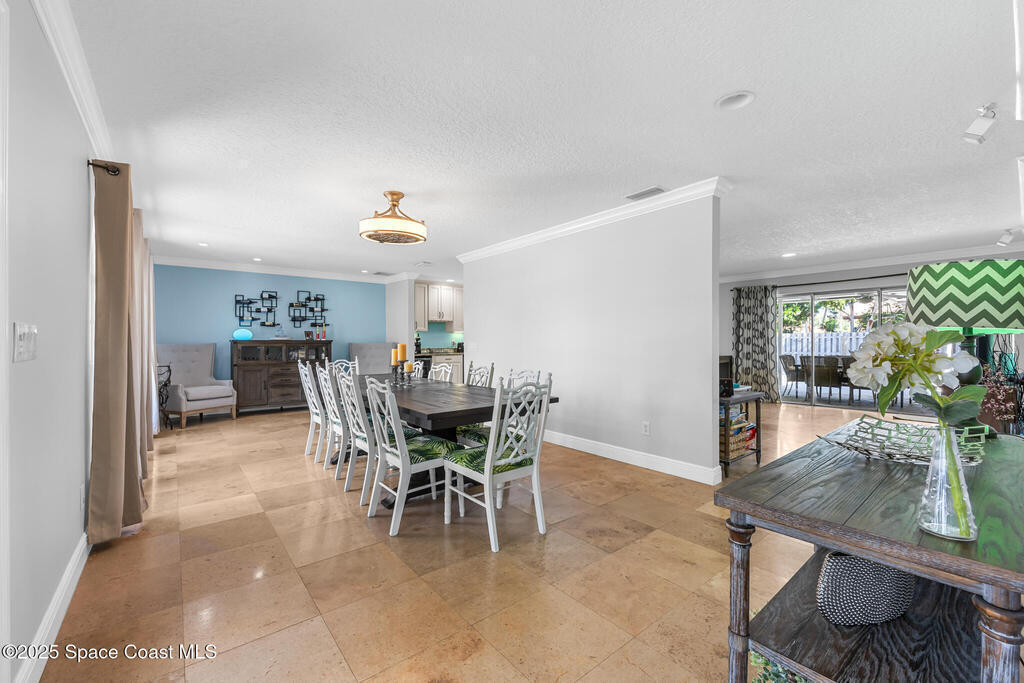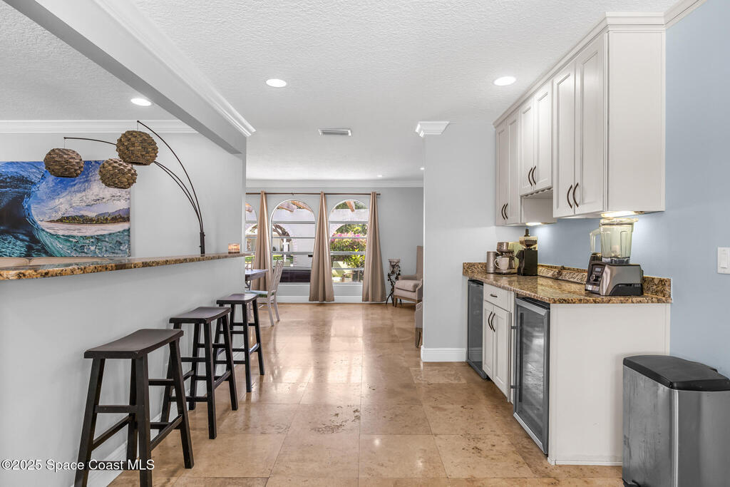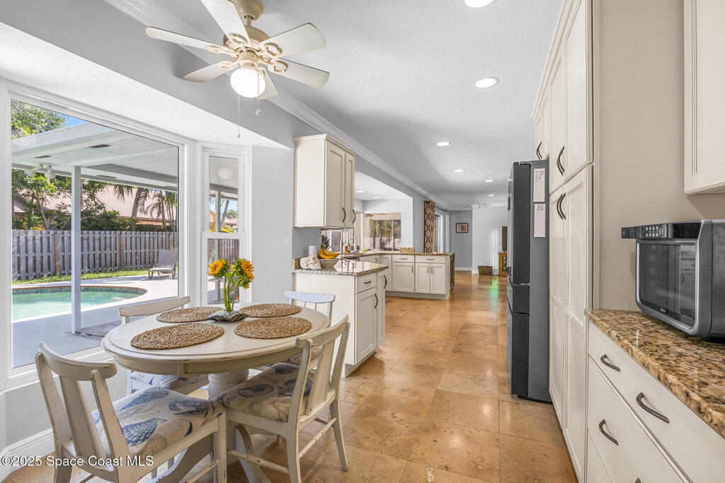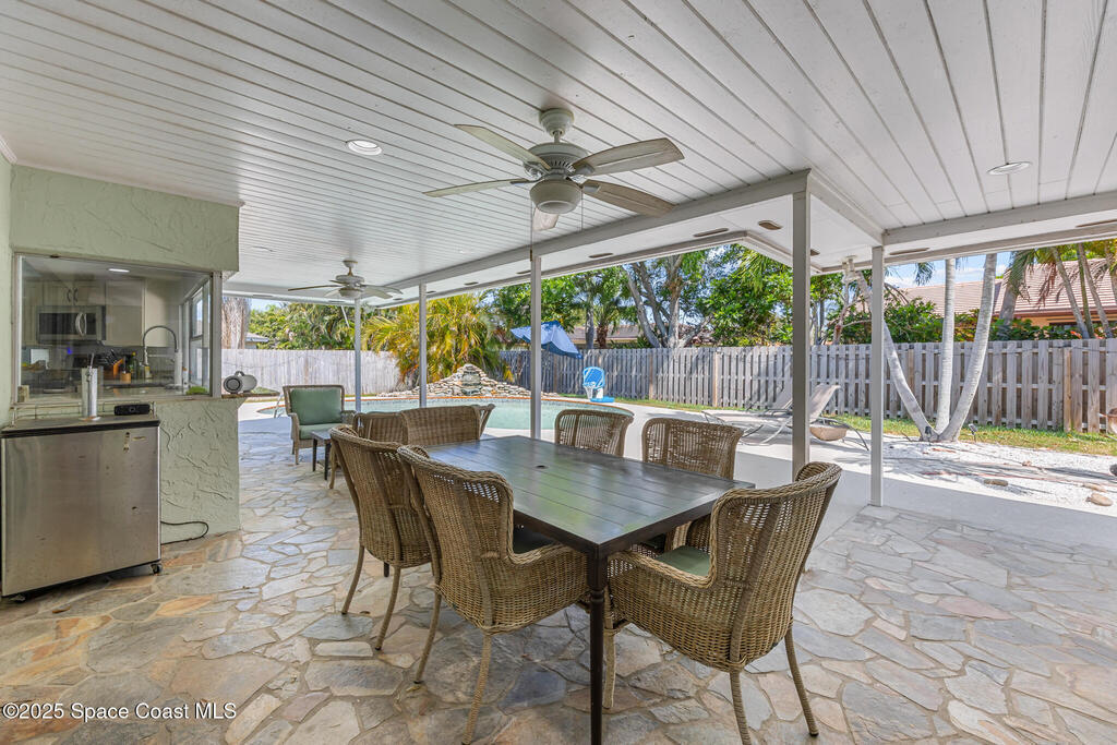 Welcome to your own slice of paradise! This beautifully maintained 3/br 2/b home offers the perfect blend of Florida living to modern comfort and is nestled between the Atlantic Ocean and Indian River. This home has a bright open floor plan, a spacious living area, updated large kitchen overlooking a pristine pool. Step outside to your private oasis, where a sparkling saltwater pool, tropical landscaping and a large patio invite you to unwind and soak up the sun. The primary suite features direct access to the pool, a walk-in closet and spacious bath. Two additional bedrooms offer flexibility for guests, family or a home office. The wine and drink cooler centrally located in the kitchen are a bonus! NO HOA...Double BONUS!!