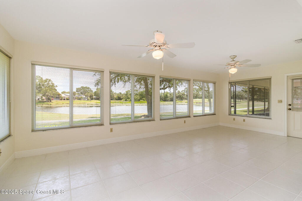 Located in a resort-style country club community, offering top-notch amenities for an exceptional Florida lifestyle. Step into the 3-bedroom, 2-bathroom Columbus model situated on the 11th hole offering golf and water views. Enjoy peace of mind and energy savings with impact windows and solar panels. Inside you will find a freshly painted interior that is filled with natural light. This split floorplan provides ample space and a screened patio where you can relax and enjoy the outdoor scenery.