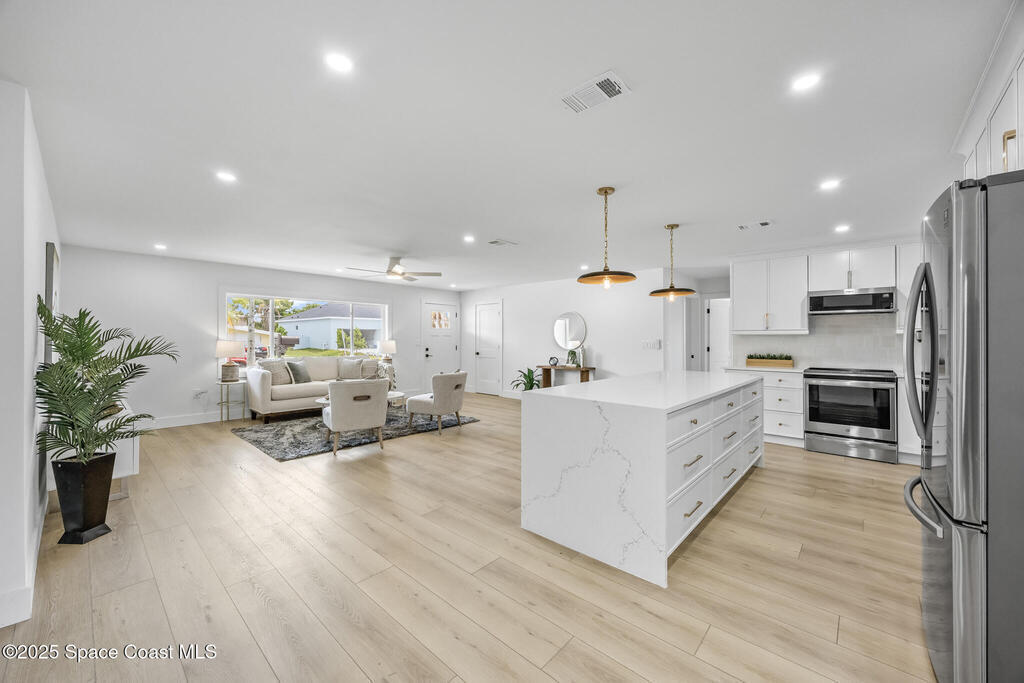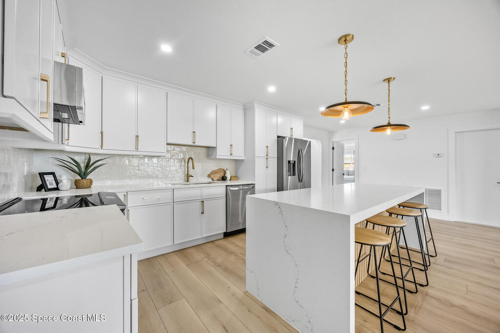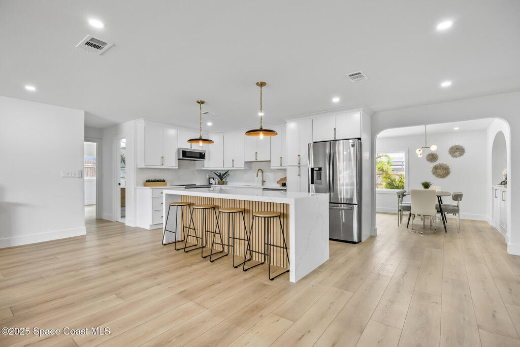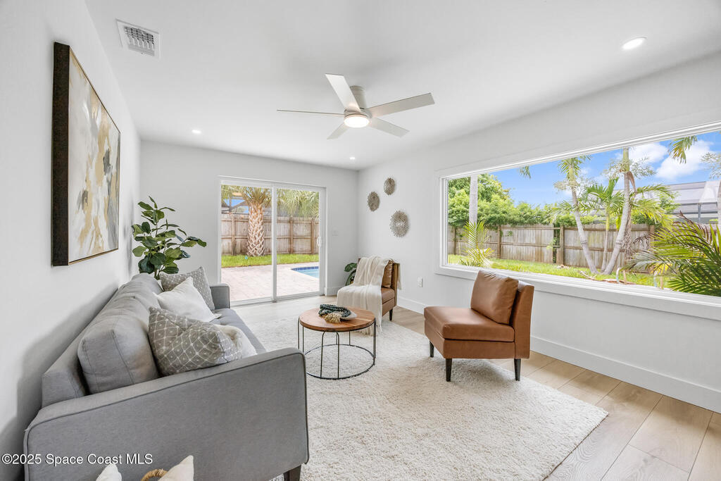 Beautifully remodeled home with stunning designer finishes, perfectly located just a short walk or bike ride to the beach! This light-filled home offers a gorgeous open floor plan with a desirable split layout, providing both spacious living areas and private bedrooms. The interiors are bright and airy, with walls of windows inviting tons of natural light throughout. Step outside to your own private oasis -- a lush backyard with a large sparkling pool and plenty of space for lounging, entertaining, or simply unwinding. Every detail has been thoughtfully designed for comfort, style, and effortless coastal living. This is the beachside retreat you've been waiting for!
