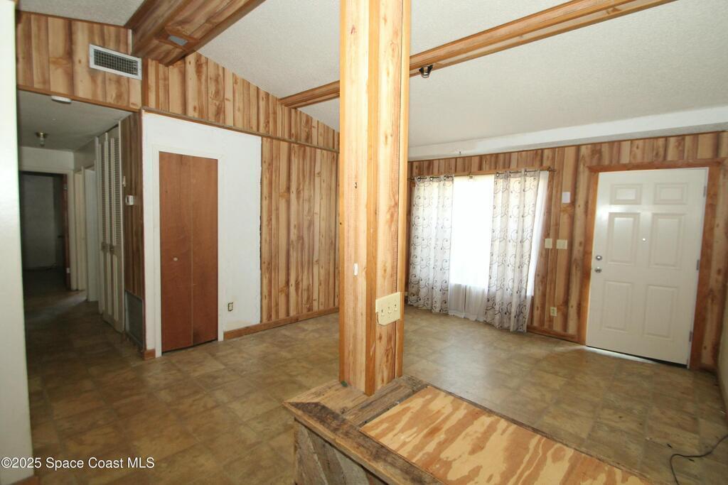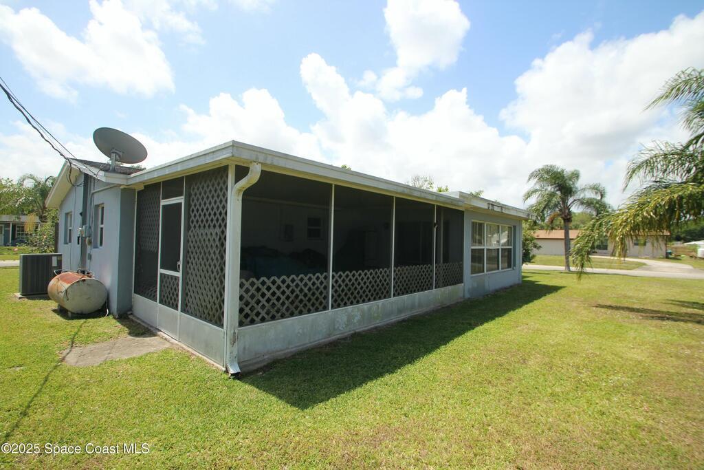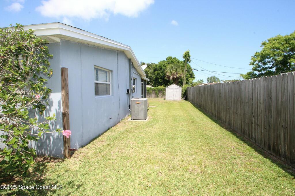 Very desired and centrally located established Melbourne community. No HOA and super close to the beaches. Solid CBS construction home with 3 bedrooms and 1.5 baths that has vault ceilings and wood beams. Open floor plan that also has an extra living / family room that has many possibilities and a ton of windows for a light and bright feel. Very clean and no smoking or pets ever in the house. Indoor laundry. Huge screened porch overlooking the yard with a storage shed and that has 2 sides already fenced. If you take up the vinyl flooring in just the living areas then you'll have beautiful Terrazzo floors throughout. Great price for over 1300 sq ft of living area.