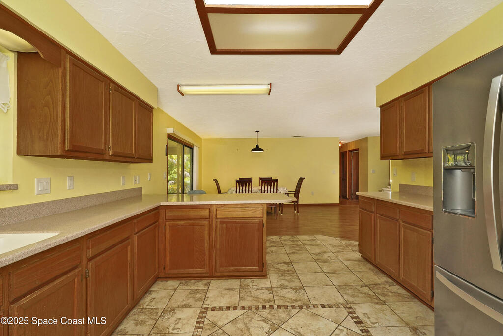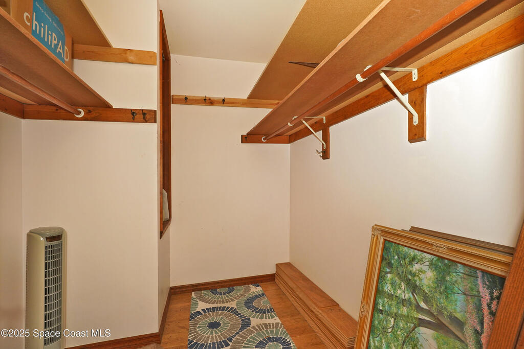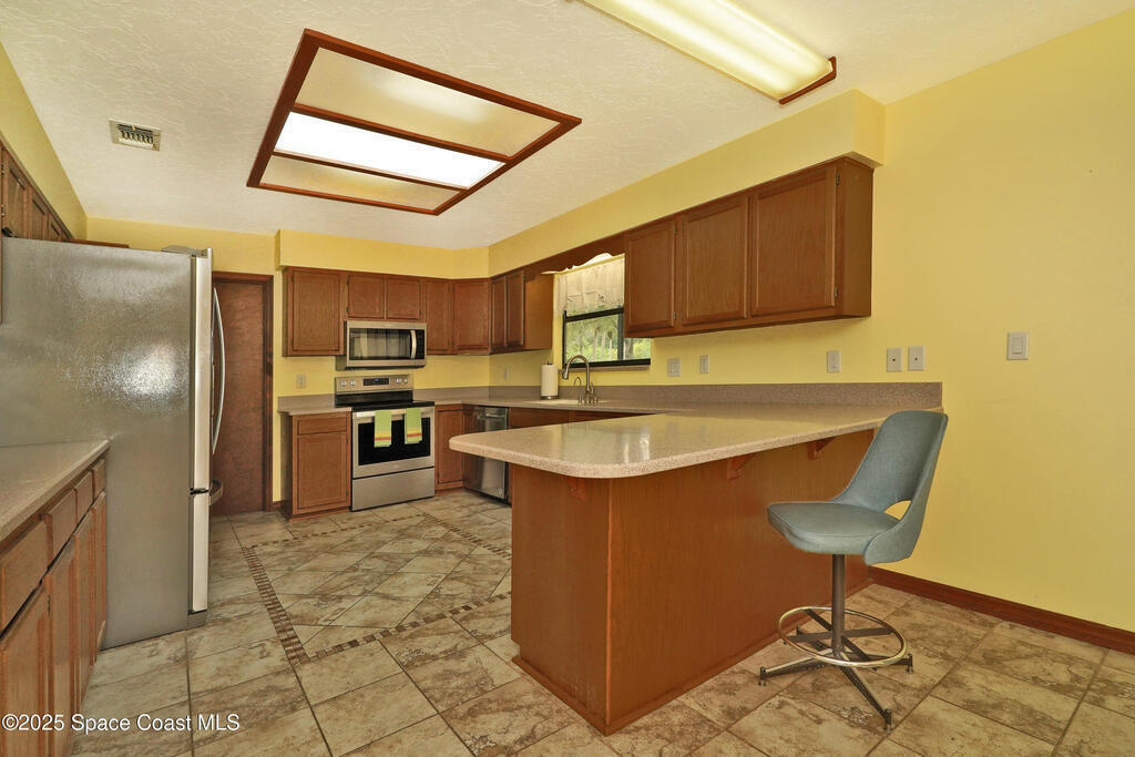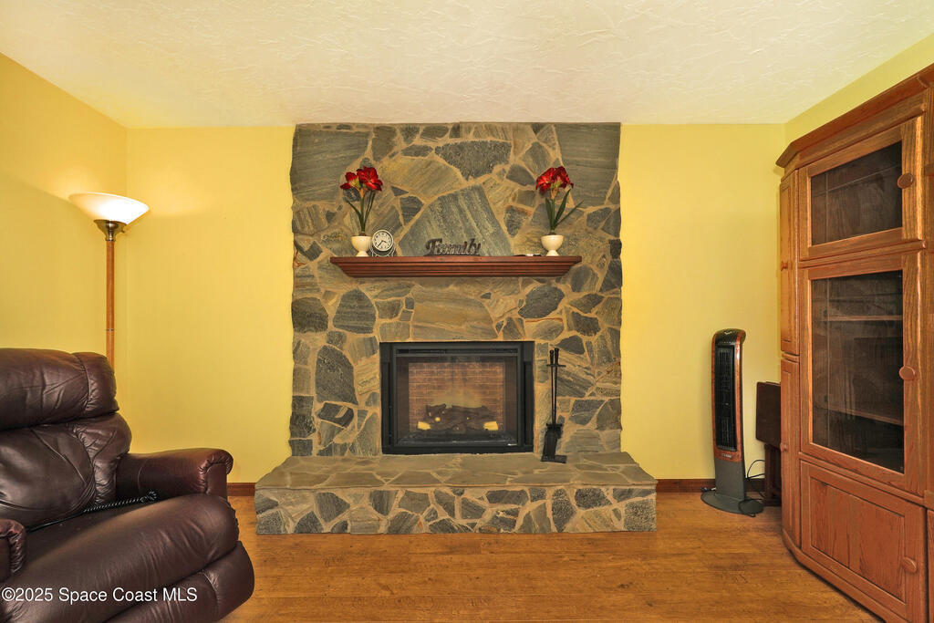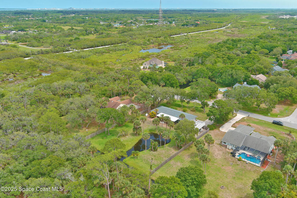 What an opportunity to own a treasure of a home on an acre in North Merritt Island on a pond. Enter through the large screen enclosed front porch to 3 bedrooms, 2 1/2 bathrooms, a bright living room with fireplace, a large dining area with view to the screened back porch and extra large yard. There's a separate laundry room with a sink and more storage cabinets and a utility room next to that. Additionally there is a spacious 2 car garage with plenty of room on the drive way as well as an RV/boat pole barn and an additional carport for trailer or vehicle storage. The large back yard is surrounded by wood and chain-link fences and there is a pond and stream. New roof in 2023 and brand new Generac 26Kw propane standby generator. This friendly cull-du-sac neighborhood is very close to shopping, churches, schools and restaurants, and conveniently located just 14 minutes to Cape Canaveral and the beaches and 40 minutes to Orlando.