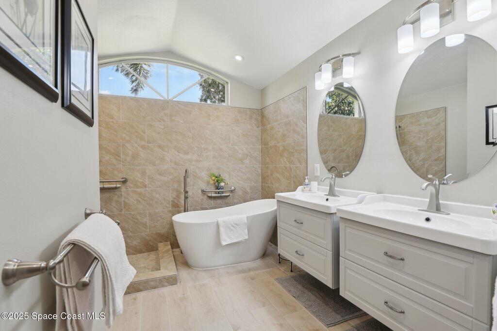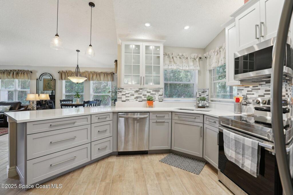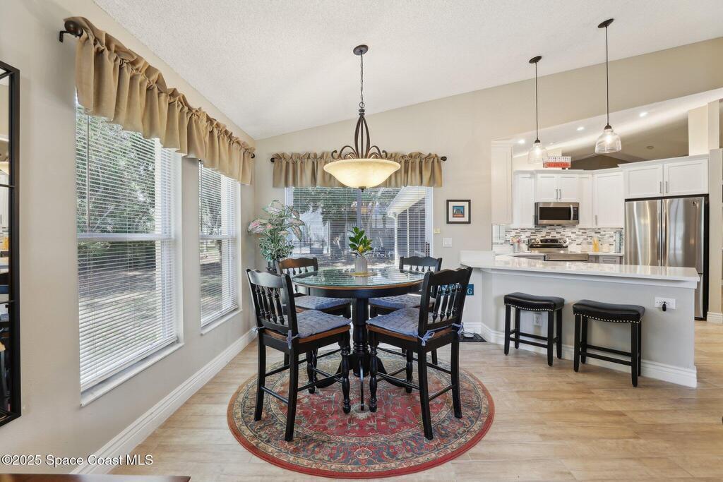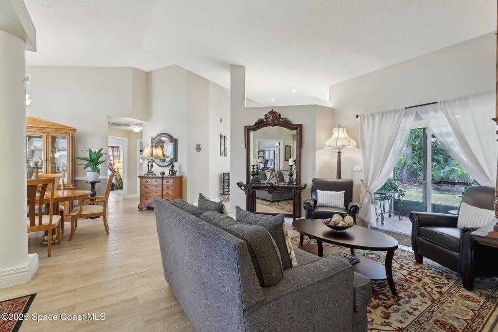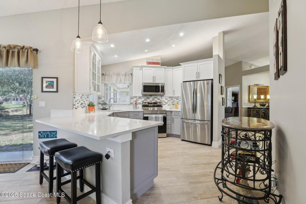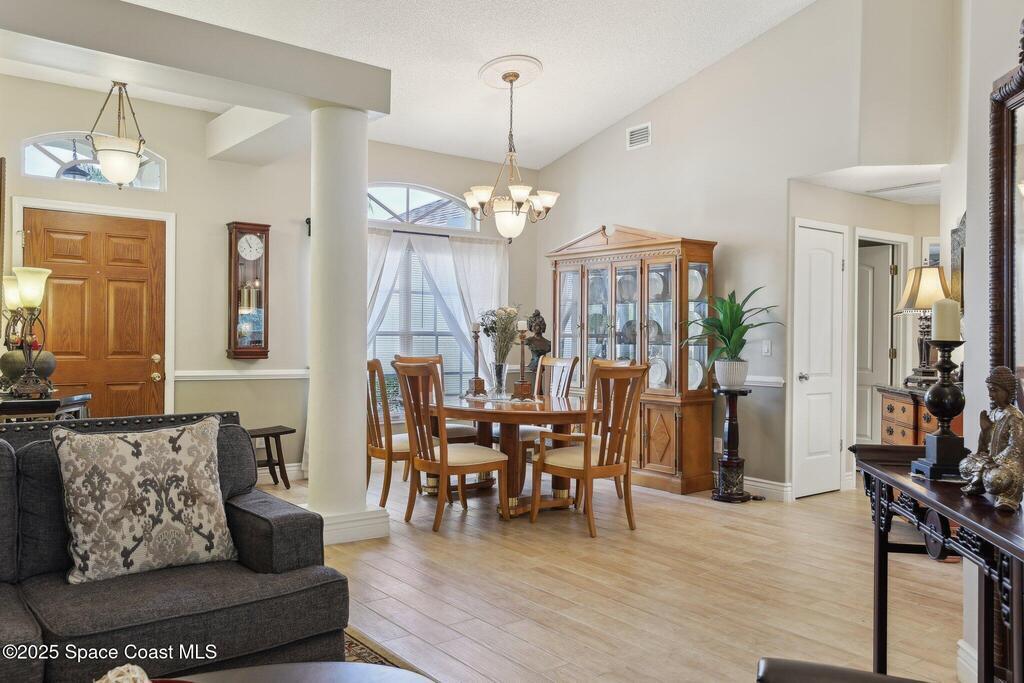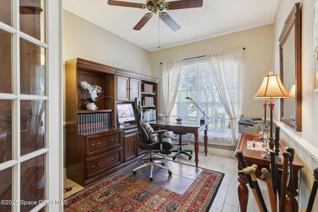 Priced to Sell - Must-See Renovated Home in Viera East Sunrise Subdivision! Welcome to this beautifully renovated 3-bedroom, 2-bath home with a dedicated office, located in the desirable Viera East Sunrise neighborhood. You will be impressed by the new landscaping and inviting curb appeal. Step through the front door into a bright, open living space featuring soaring ceilings, elegant architectural columns, upgraded trim work and charming ceramic plank tile flooring -- details typically found in high-end homes. The thoughtfully designed split floor plan features a formal living and dining room, a spacious office with French doors and a large, open plan family room which is perfect for entertaining! The bright, fully updated kitchen features quarts counters, modern cabinetry, new stainless steel appliances, a cozy breakfast nook and ample storage. Both bathrooms have been fully and tastefully renovated with contemporary finishes.