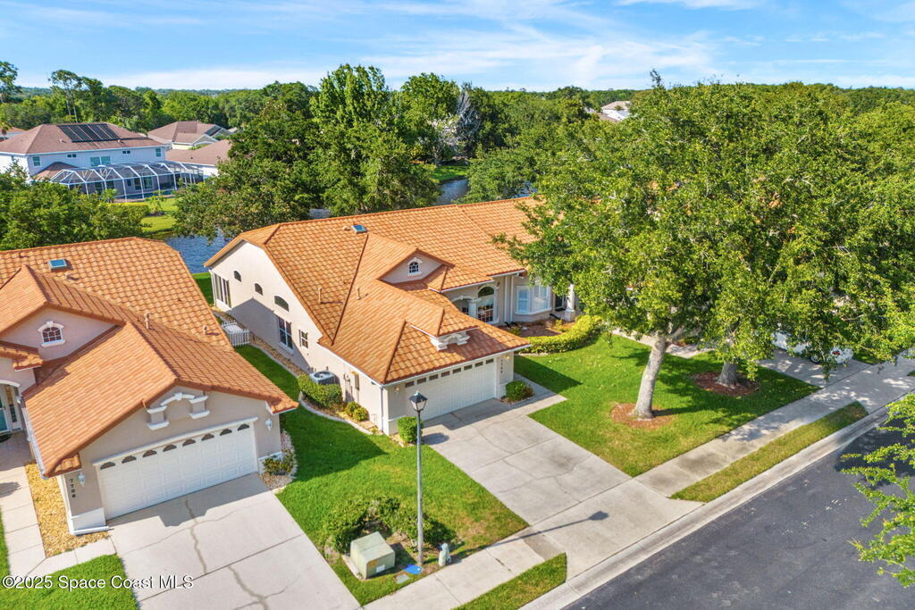 Welcome to tropical living in the heart of Suntree! Located in the gated Emerald Pointe community, this charming three-bedroom, two-bath duplex blends comfort, style, and Florida flair. You'll love the attractive landscaping and two-car garage, but it's what's inside that truly shines - vaulted ceilings with skylights bathe the home in natural light, highlighting tile, laminate, & carpet floors throughout. The spacious kitchen features generous counter & cabinet space with a stunning backsplash, a center island, and a cozy breakfast nook. Host dinners in the formal dining area with serene water views, or relax in the enclosed Florida room with ducted air and glass windows - perfect for year-round enjoyment. The primary suite offers a walk-in shower, garden tub, and ample space to unwind. A whole-home gas generator ensures peace of mind. Enjoy beautiful water views from multiple rooms & peaceful moments by the water's edge. Complete with a community pool, your tropical retreat awaits!
