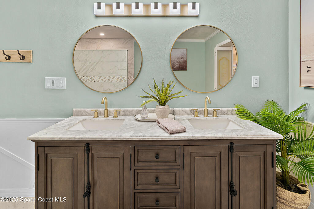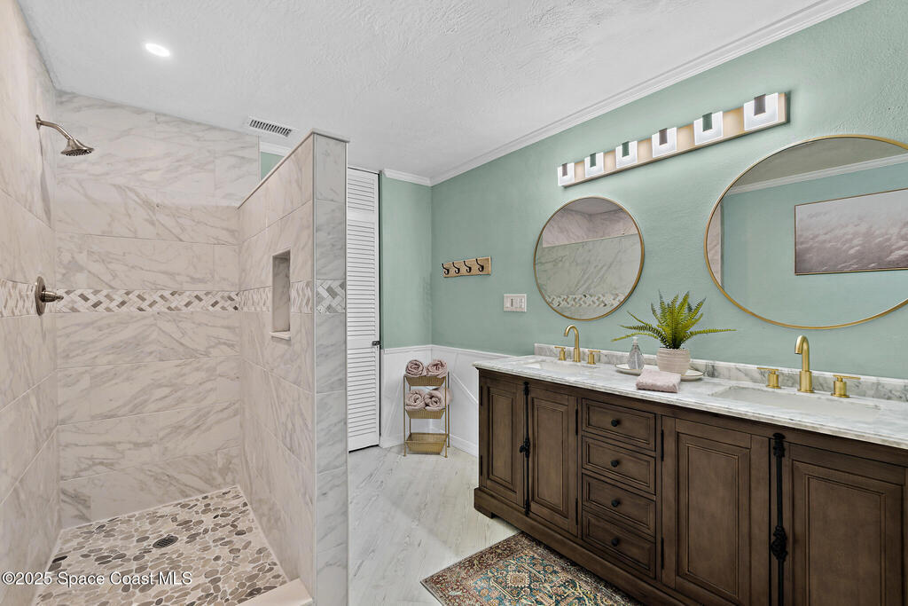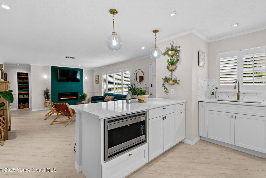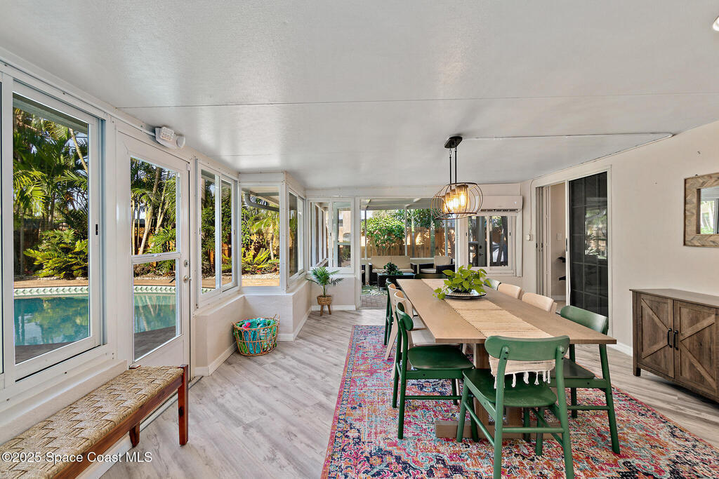 This stunning home is designed for hosting and relaxation. Step into expansive living areas that seamlessly lead through a swanky lounge to a gorgeous dining room with views of your private pool oasis. The fully fenced backyard is a tropical retreat, featuring 12 varieties of palm trees and lush, vibrant landscaping. Inside, you'll find an enormous master suite complete with a beautifully updated master bathroom. On the opposite side of the home, a second master suite with its own en-suite providing access to the pool area allows for ideal comfort and privacy. A spacious private den on the north side of the home offers the perfect escape, playroom, or home office. The home offers 3 AC units for maximum comfort. Enjoy numerous upgrades throughout, including a brand-new kitchen with quartz countertops, renovated bathrooms, and a durable metal roof--all adding to the home's beauty. Don't miss this opportunity to own a one-of-a-kind, move-in-ready retreat that's perfect for entertaining.