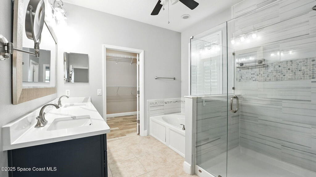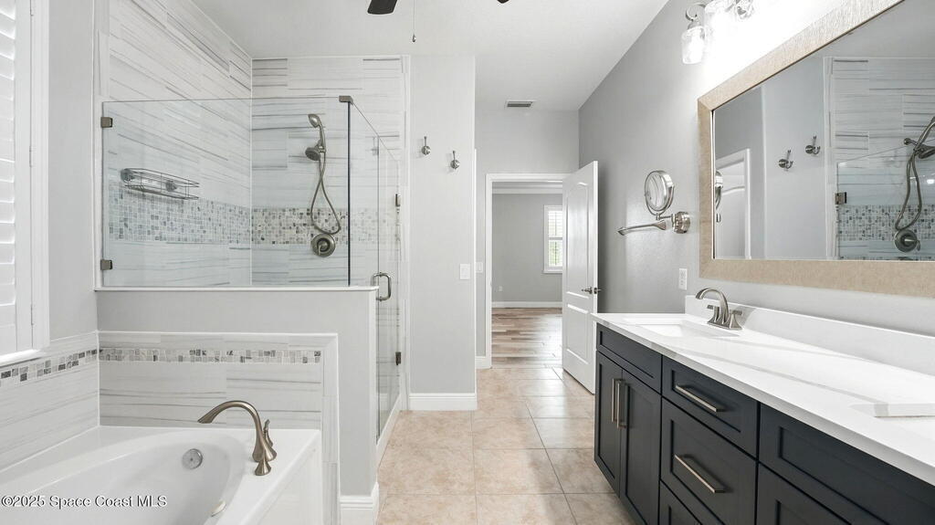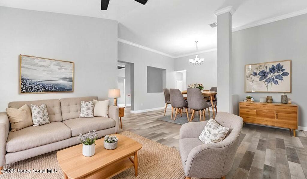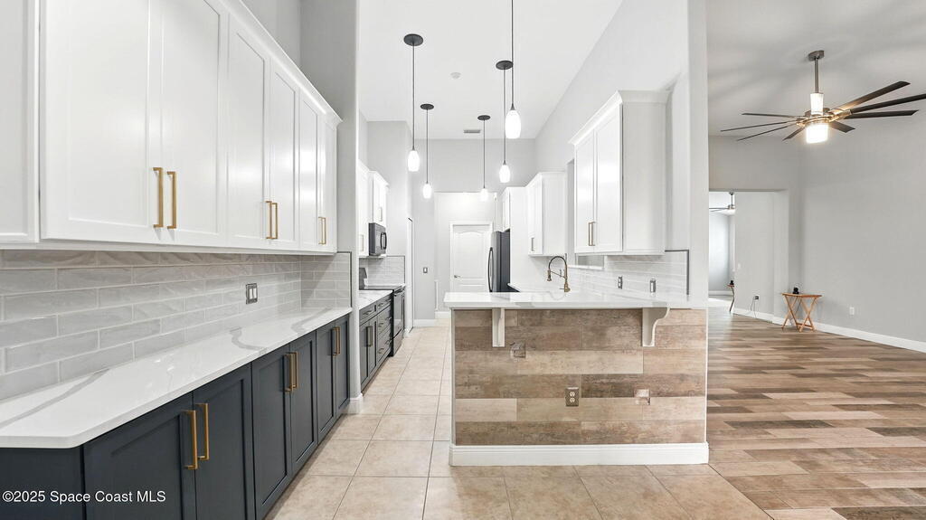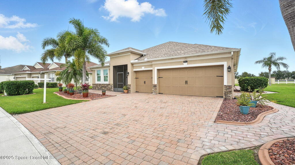 Welcome to your dream home in the highly sought-after Sunstone community in Viera! This stunning single-family home boasts 5 bedrooms, 3 bathrooms, and a 3 car garage, perfect for a growing family or those who love to entertain. The home features a remodeled kitchen with high-end quartz countertops and sleek black appliances. The bathrooms have a spa-like feel, and there is new tile flooring throughout. The primary bedroom has a HUGE walk-in closet. Step outside to the oversized, paver patio with an expansive view, perfect for enjoying the Florida sunshine. There are new impact windows; and, accordion shutters installed on the Sun Room, so you can rest easy knowing your home is protected during storm season. The Villages of South Solerno offers resort-style amenities, making it the perfect place to call home. Don't miss out on this incredible opportunity to own a piece of paradise in Viera! The roof was replaced in 2018.