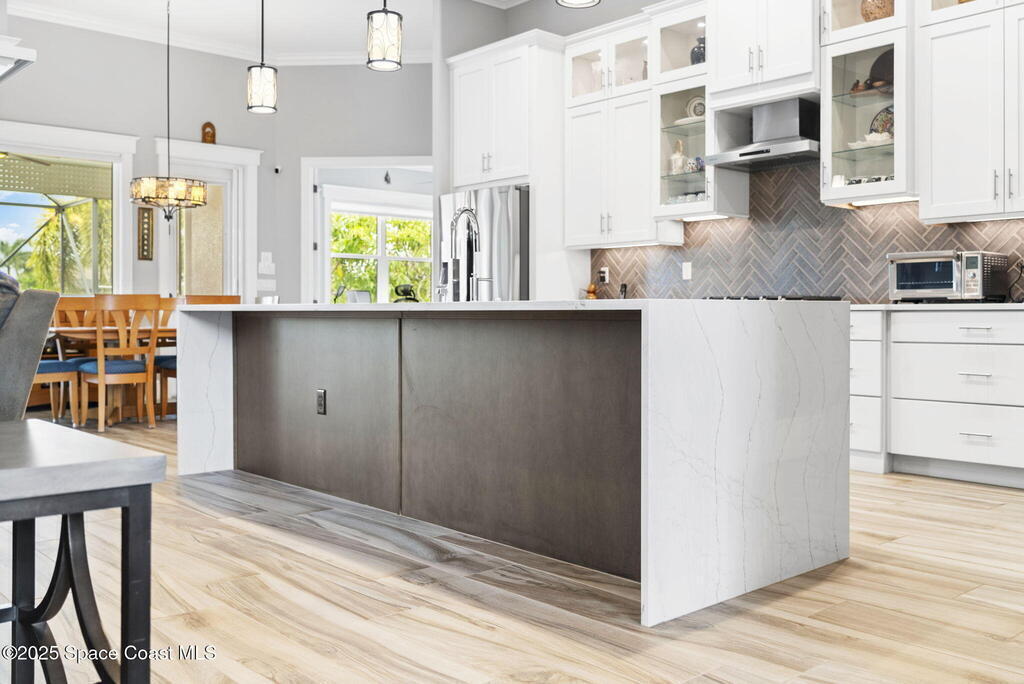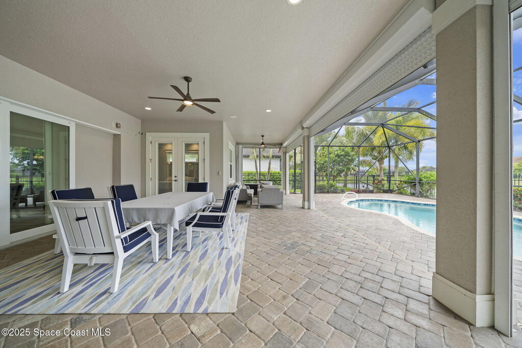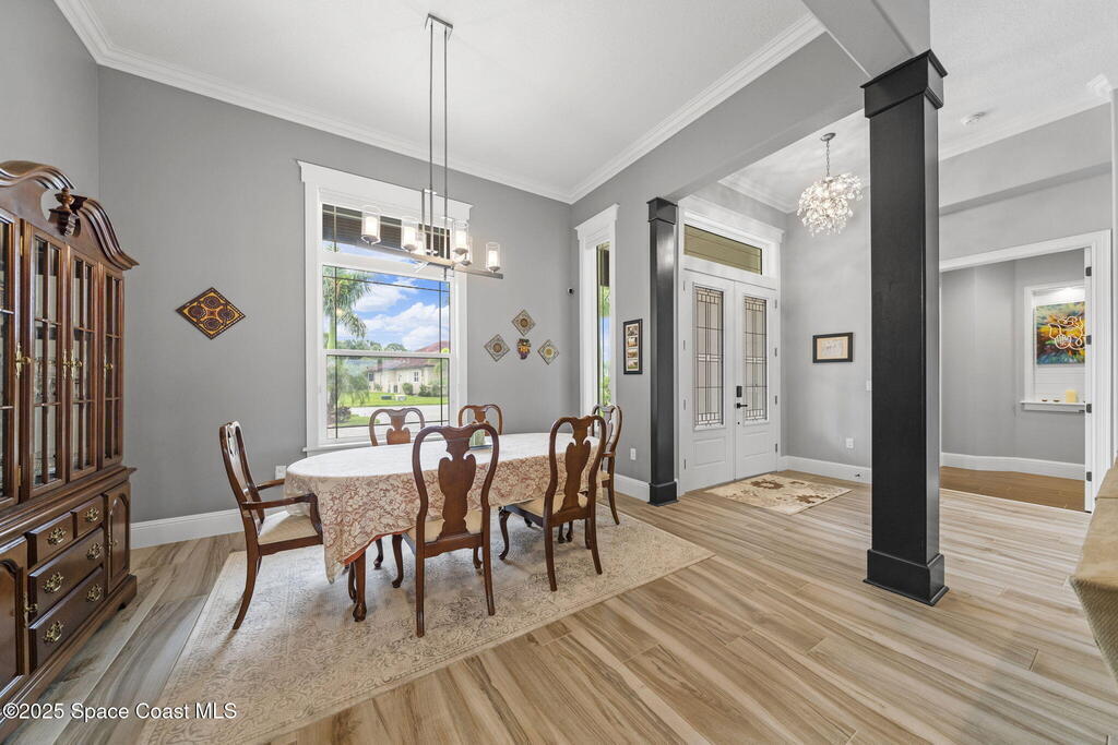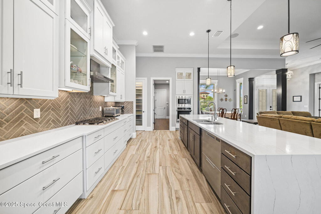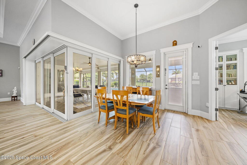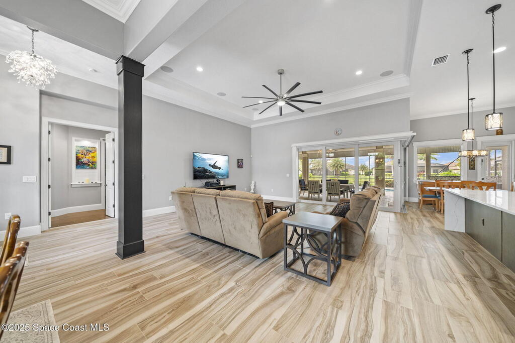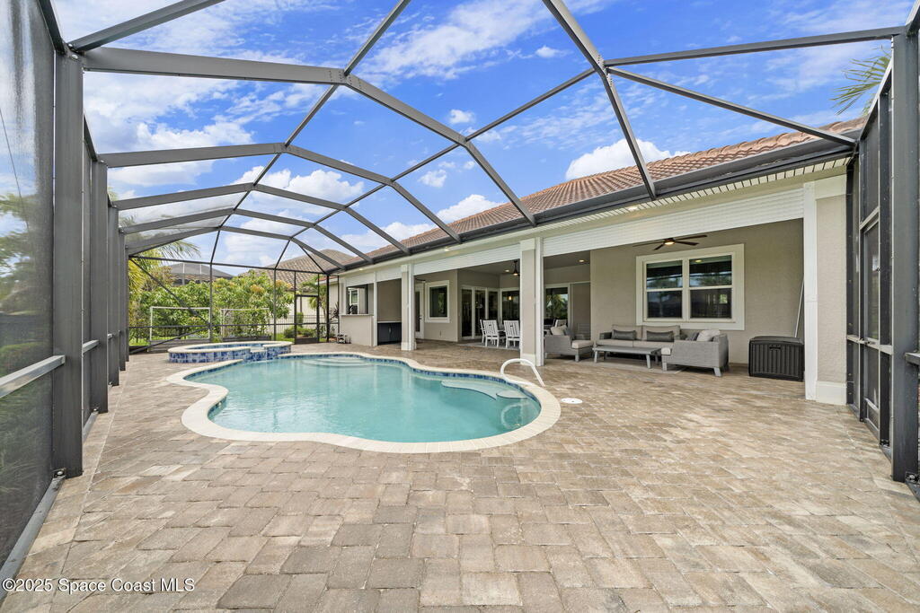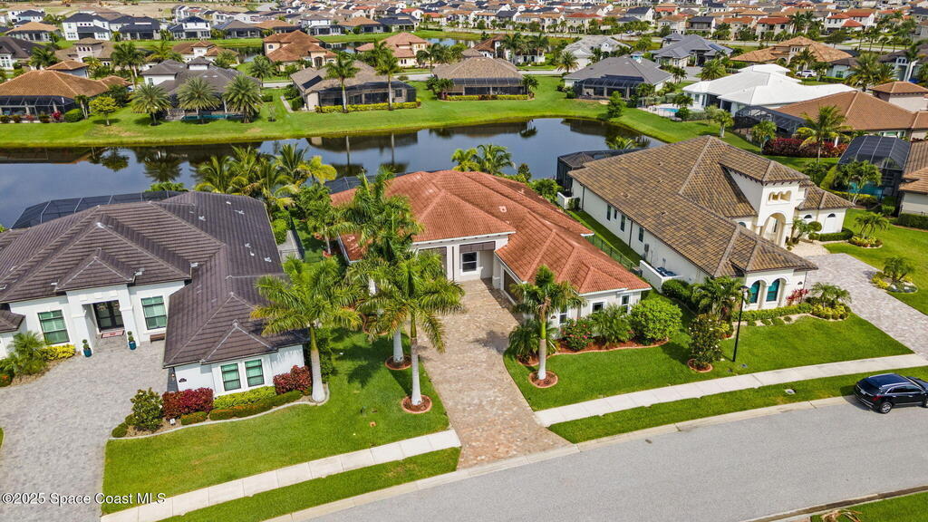 Welcome to luxury living in the heart of Viera! Located in the exclusive gated community of Seville at Addison Village, this stunning 3-bed, 3-bath, pool home with a flex room/office and 3-car garage is the epitome of Florida elegance and comfort! Built in 2018, this home boasts an impressive open-concept layout with soaring ceilings, elegant crown molding, and custom oversized baseboards. The designer kitchen is a showstopper, featuring crisp white shaker cabinetry, quartz countertops, stainless steel appliances, and a large center island perfect for entertaining. Beautiful plank tile flooring flows throughout the entire home, enhancing the home's clean and cohesive style. The spacious primary suite is your private retreat, complete with dual quartz vanities, a large glass-enclosed walk-in shower, his & her walk-in closets, and private access to the lanai. Step outside to your personal backyard oasis--a screened lanai and pool area designed for year-round enjoyment. IMPACT WINDOWS