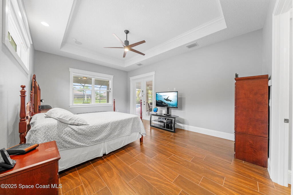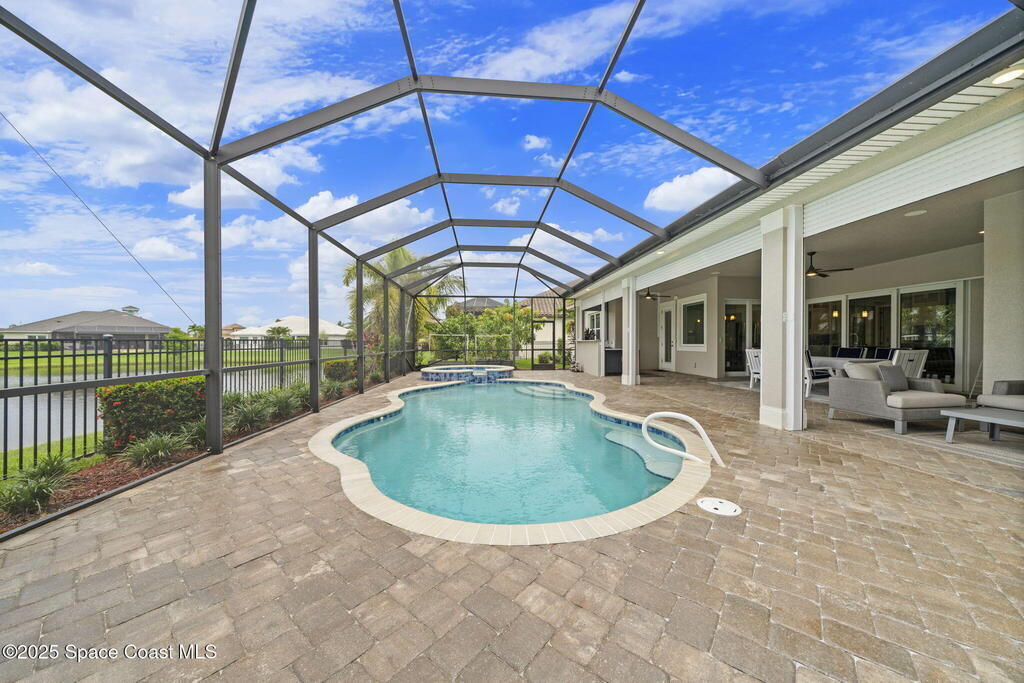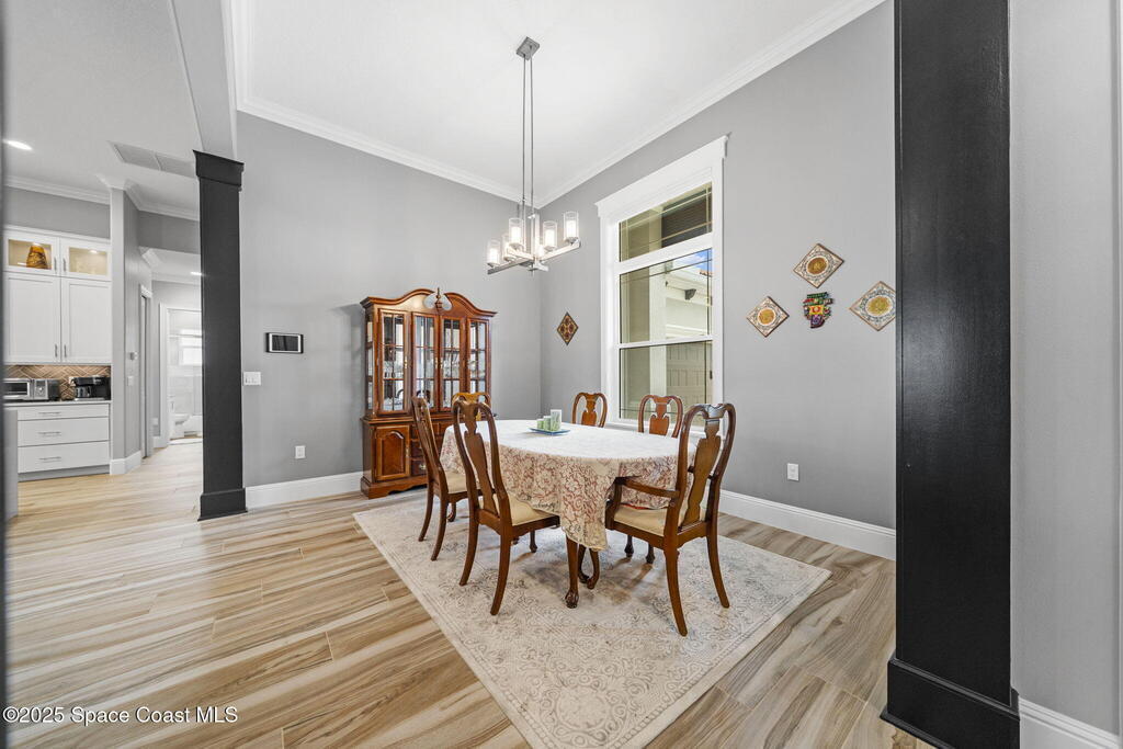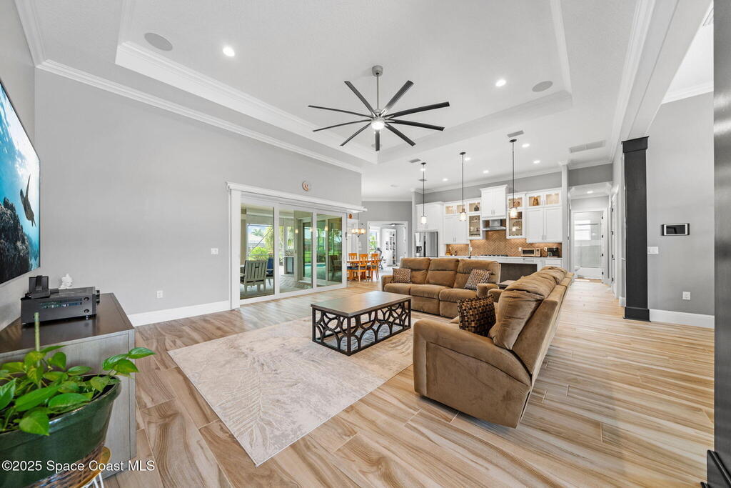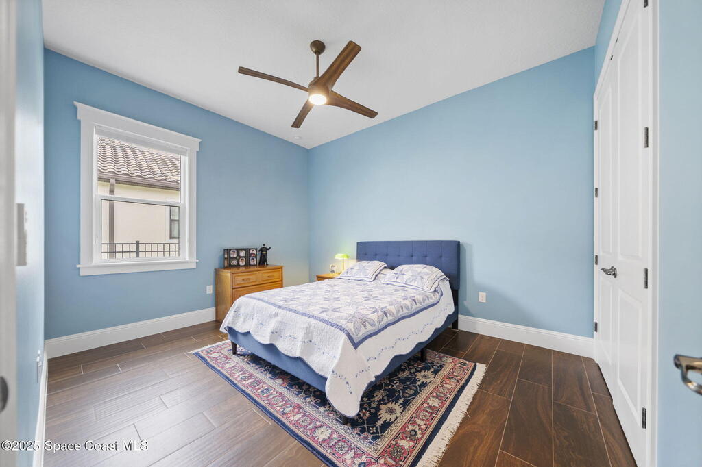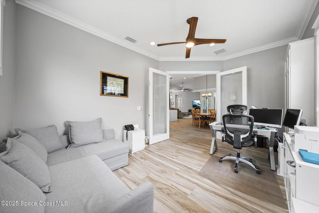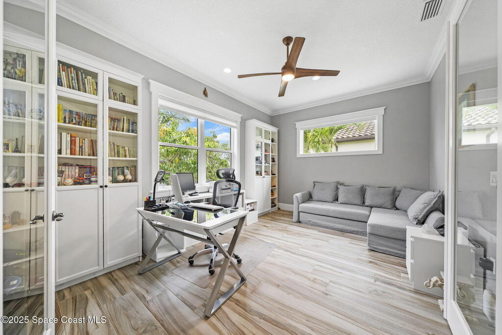 Welcome to luxury living in the heart of Viera! Located in the exclusive gated community of Seville at Addison Village, this stunning 3-bed, 3-bath, pool home with a flex room/office and 3-car garage is the epitome of Florida elegance and comfort! Built in 2018, this home boasts an impressive open-concept layout with soaring ceilings, elegant crown molding, and custom oversized baseboards. The designer kitchen is a showstopper, featuring crisp white shaker cabinetry, quartz countertops, stainless steel appliances, and a large center island perfect for entertaining. Beautiful plank tile flooring flows throughout the entire home, enhancing the home's clean and cohesive style. The spacious primary suite is your private retreat, complete with dual quartz vanities, a large glass-enclosed walk-in shower, his & her walk-in closets, and private access to the lanai. Step outside to your personal backyard oasis--a screened lanai and pool area designed for year-round enjoyment. IMPACT WINDOWS