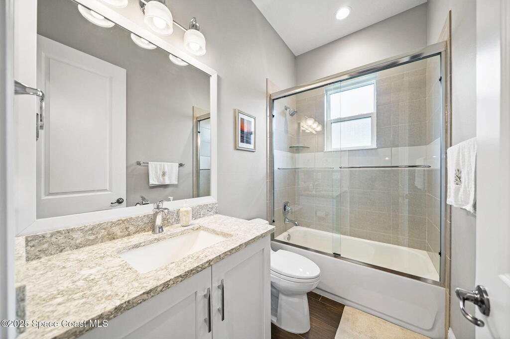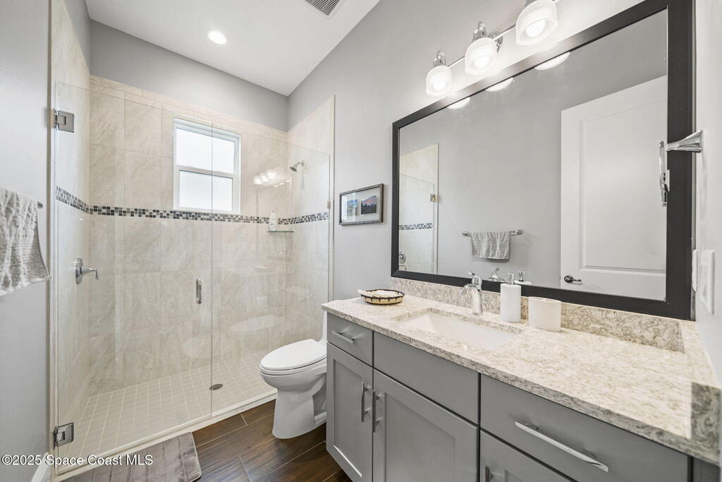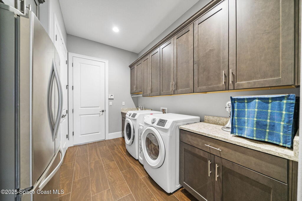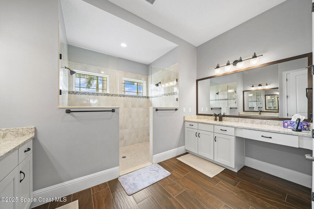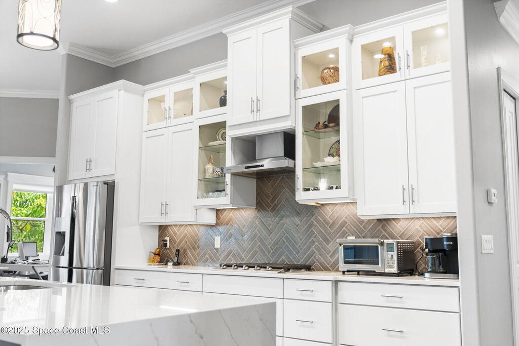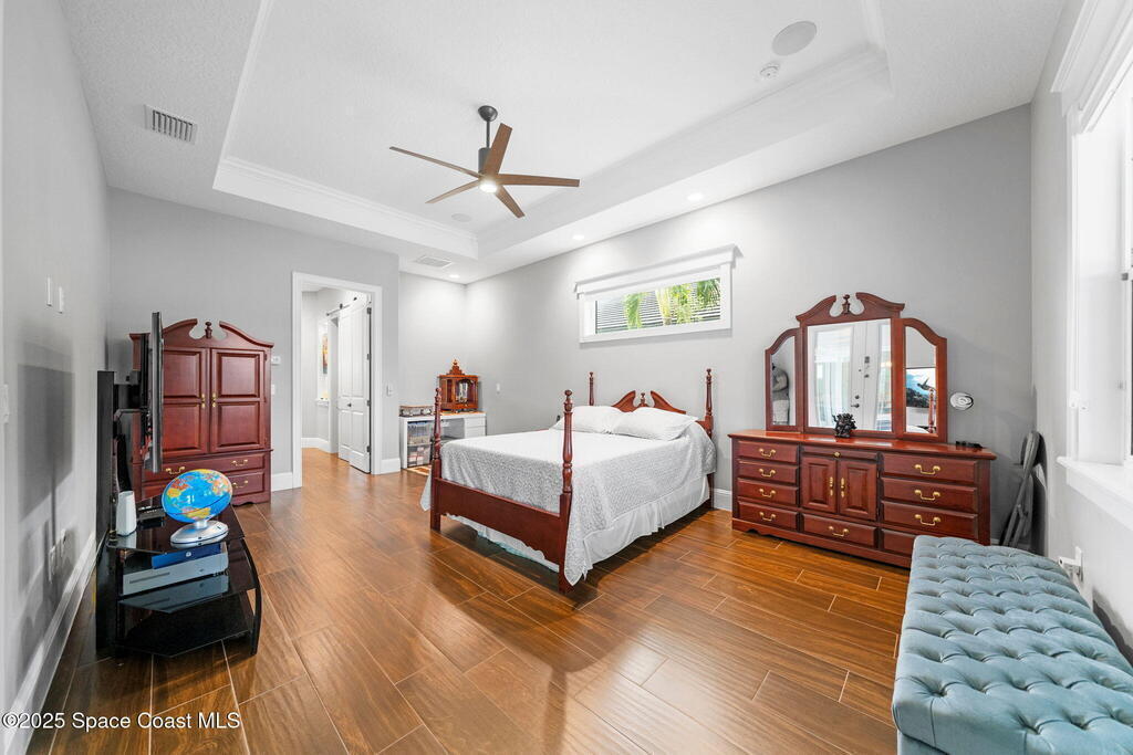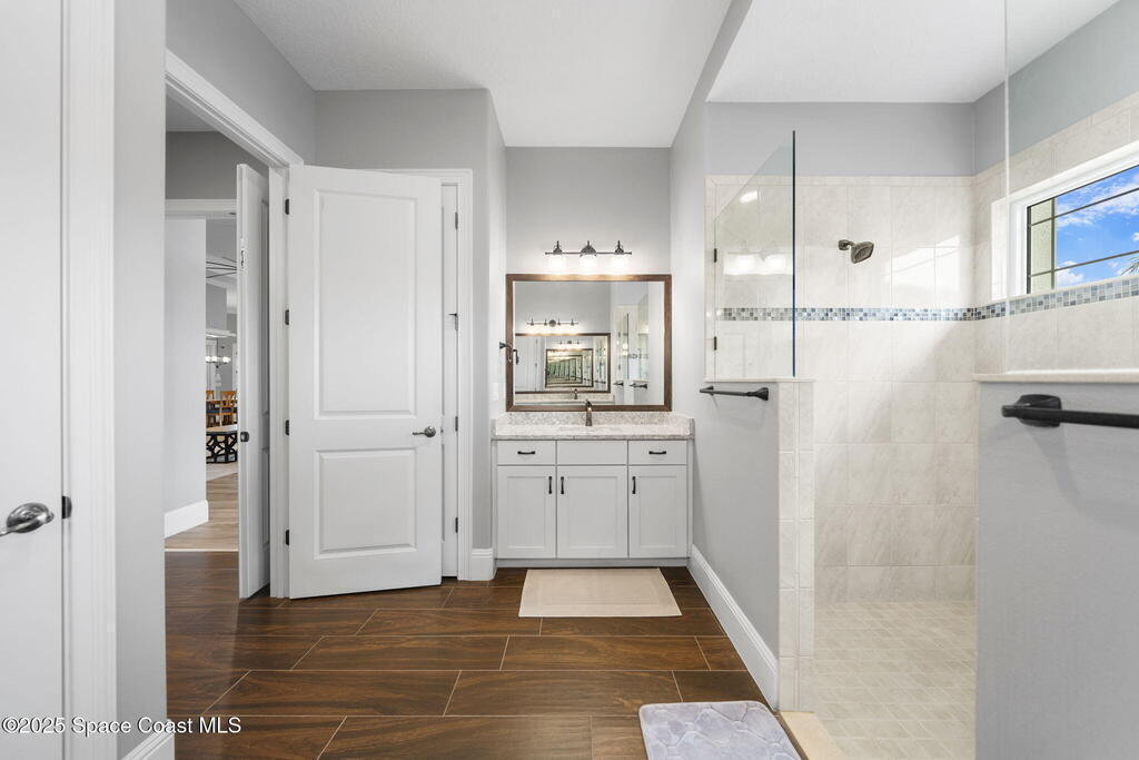 Welcome to luxury living in the heart of Viera! Located in the exclusive gated community of Seville at Addison Village, this stunning 3-bed, 3-bath, pool home with a flex room/office and 3-car garage is the epitome of Florida elegance and comfort! Built in 2018, this home boasts an impressive open-concept layout with soaring ceilings, elegant crown molding, and custom oversized baseboards. The designer kitchen is a showstopper, featuring crisp white shaker cabinetry, quartz countertops, stainless steel appliances, and a large center island perfect for entertaining. Beautiful plank tile flooring flows throughout the entire home, enhancing the home's clean and cohesive style. The spacious primary suite is your private retreat, complete with dual quartz vanities, a large glass-enclosed walk-in shower, his & her walk-in closets, and private access to the lanai. Step outside to your personal backyard oasis--a screened lanai and pool area designed for year-round enjoyment. IMPACT WINDOWS