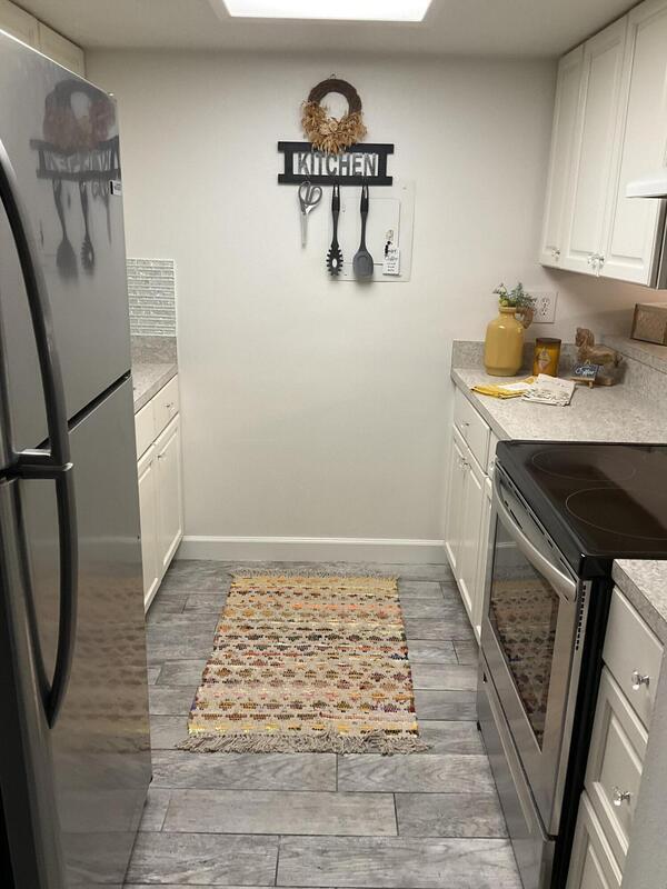 Charming condo in the heart of Melbourne. Spacious, one bedroom, remodeled corner unit, with pool and golf course views. Inviting unit , light and bright, cute kitchen with white cabinets and new stainless appliances. Bonus room perfect for home office. Tiled throughout, A/C and water heater recently replaced. Centrally located within walking distance to shopping, restaurants and banks. HOA includes basic cable, water, tennis courts, pool & RV/boat storage as well as 24 hr video surveillance. Assigned parking. Laundry room in complex.Perfect rental property for students at Eastern Florida State College. 15 min to beach. Golf course across the street.