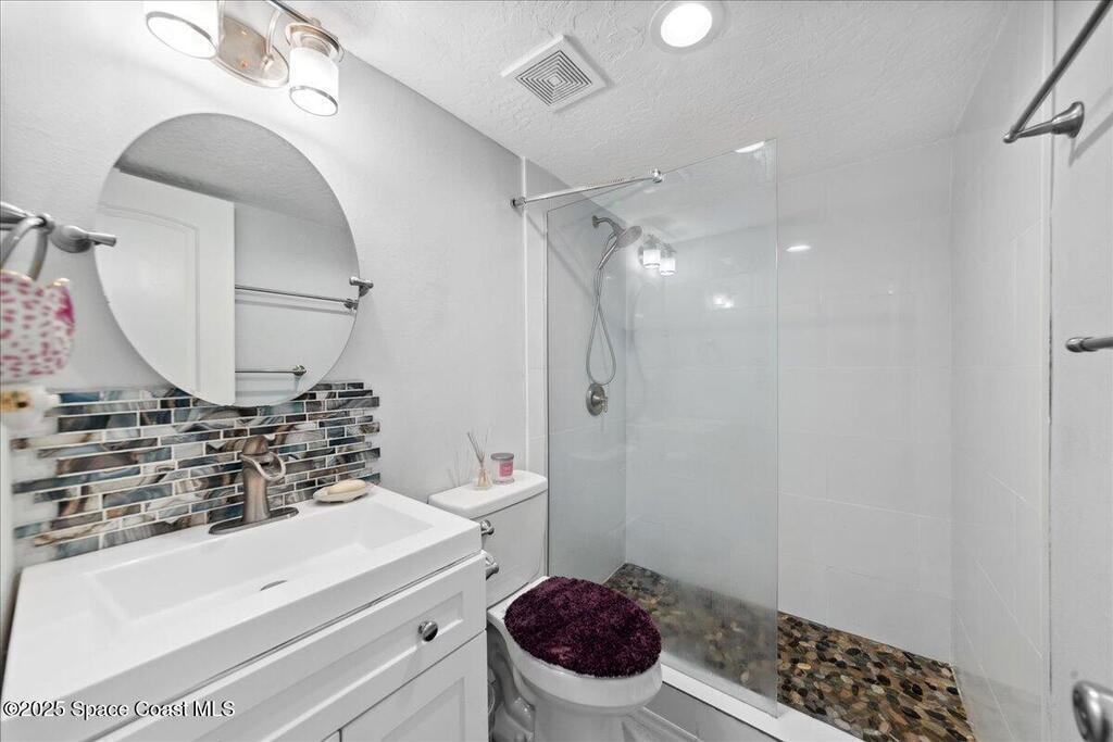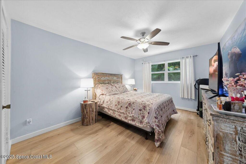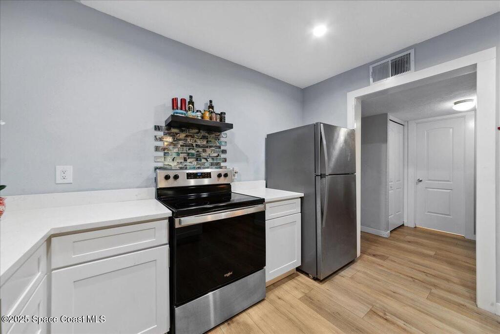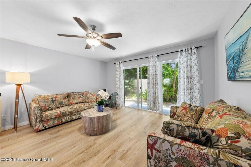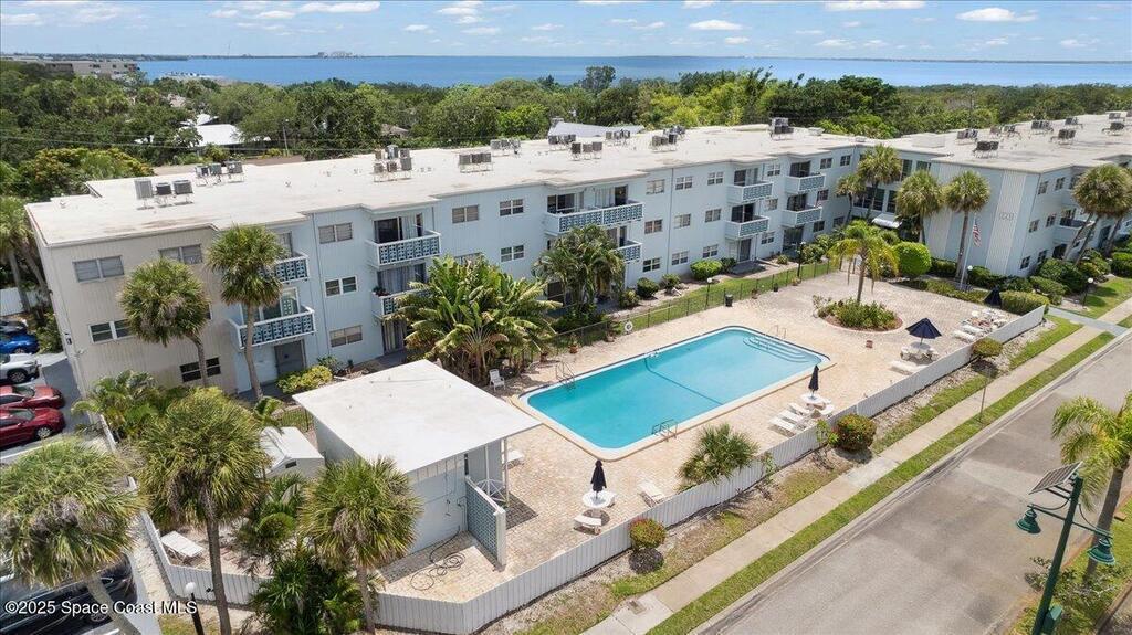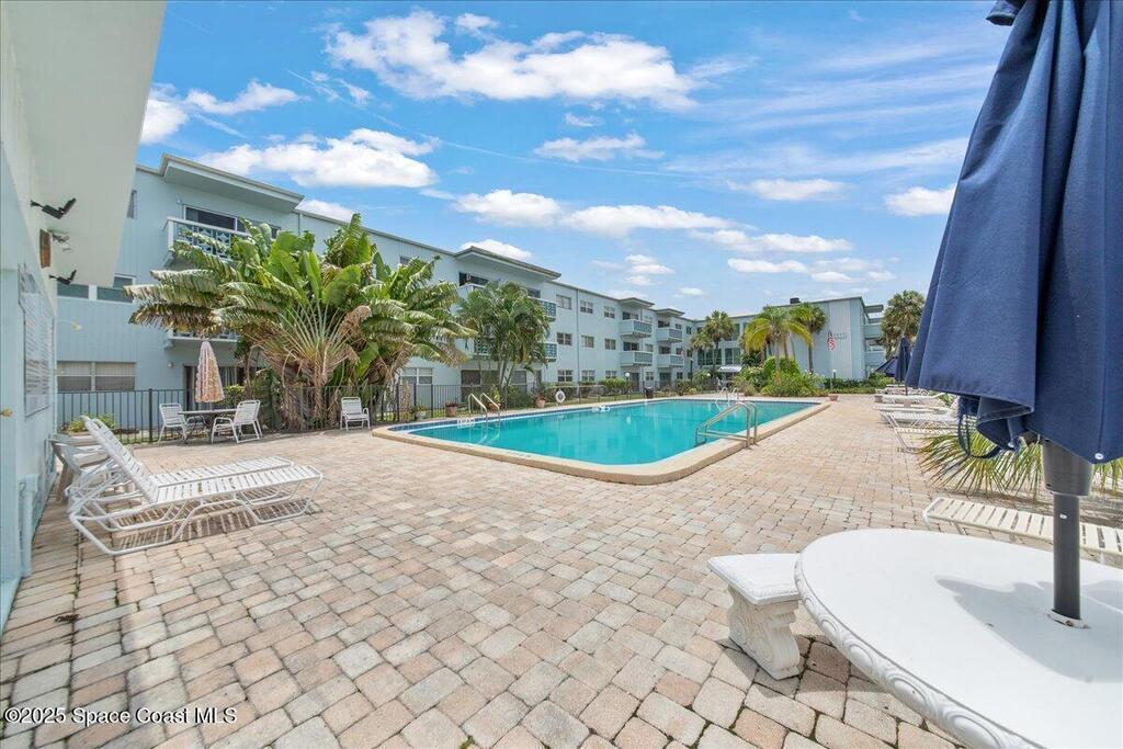 New lower price!! Own your slice of paradise just 0.8 miles from public beach access, minutes from Port Canaveral and a short 6 minute drive to the world famous Cocoa Beach Pier! Perfect for a full or part-time residence, or income producing rental (rent restricted to 1 month minimum). This fully updated (in 2022) 1 bed, 1 bath first floor unit comes with hurricane impact door and windows for peace of mind and comfort. The open floor plan and roomy kitchen are highlights of the condo. Easy to maintain upgraded luxury vinyl flooring, white cabinets and quartz countertops add to it's chic design. Association amenities include a sparkling community pool, secure entry, indoor mail area, elevator and laundry facility. Condo fees include trash, water and sewer and the building is currently being updated with new exterior paint.