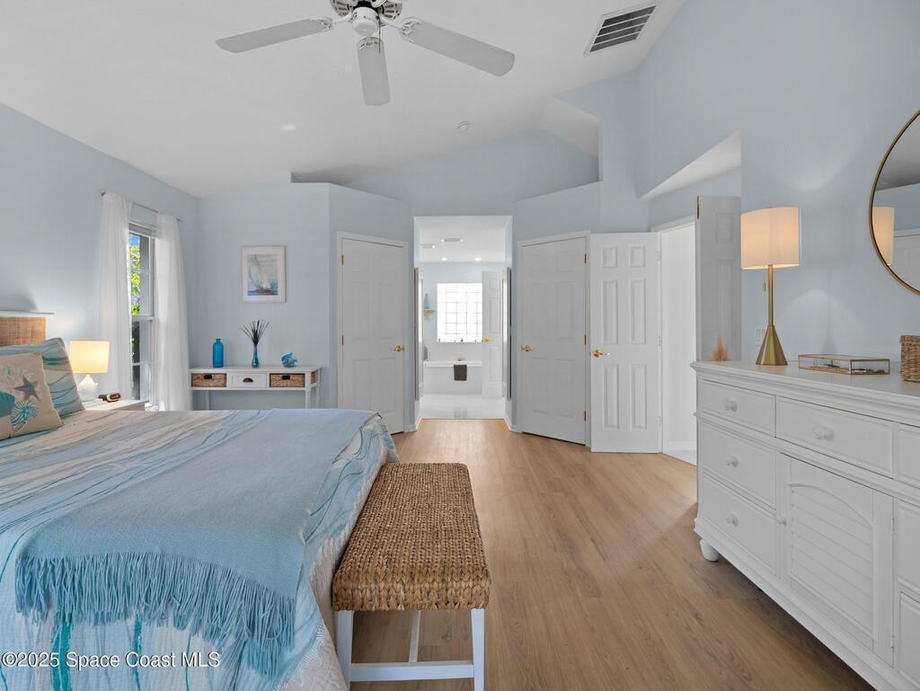 Interior Features: Breakfast Bar, Built-in Features, Ceiling Fan(s), Eat-in Kitchen, Entrance Foyer, His and Hers Closets, Kitchen Island, Pantry, Primary Bathroom -Tub with Separate Shower, Primary Downstairs, Split Bedrooms, Vaulted Ceiling(s) and Walk-In Closet(s)