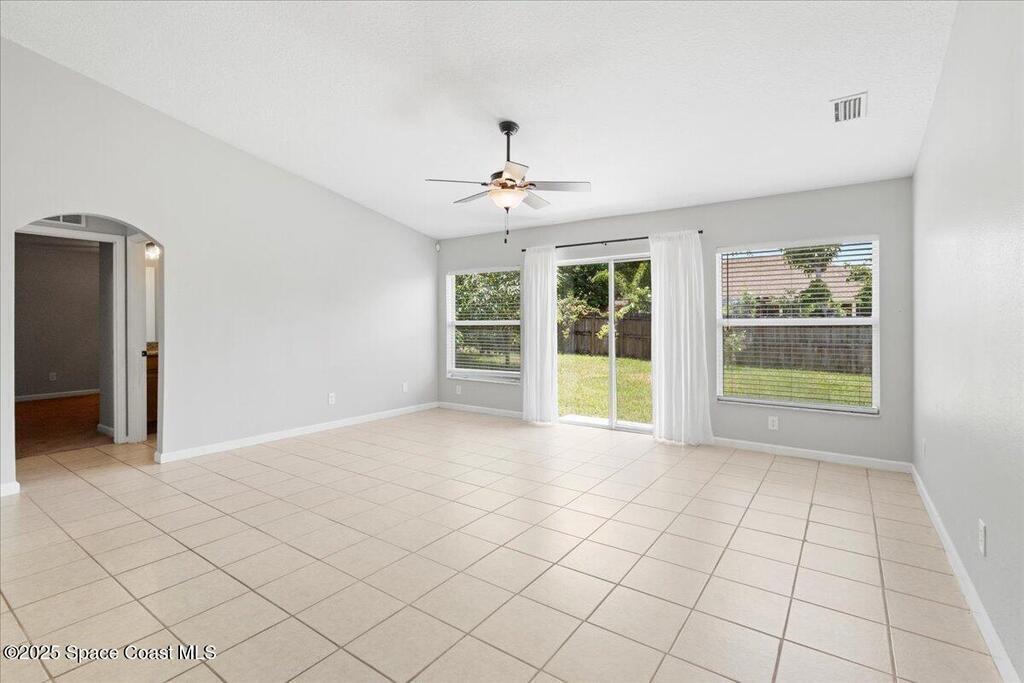VACANT & MOVE-IN READY!! This beautifully updated 4-bedroom, 2-bath, 2-car garage home offers 2,083 sq ft of well-designed living space. Inside, you'll find fresh interior paint, new carpet in all bedrooms, and the peace of mind that comes with a newer roof. The thoughtful split floor plan greets you with a welcoming foyer, vaulted ceilings, a front family room, a formal dining area, and a spacious living room at the rear of the home that's perfect for both entertaining and everyday living. The open kitchen is designed with style and function in mind. It features updated cabinetry, granite countertops, stainless steel appliances including a brand-new range and dishwasher, a breakfast bar, pantry, and a cozy eat-in nook overlooking the living space. The large primary suite is a true retreat with double walk-in closets, dual granite vanities, and a soaking tub. The additional bedrooms are served by an updated hall bath with a granite vanity. Step outside and enjoy a fully fenced back-