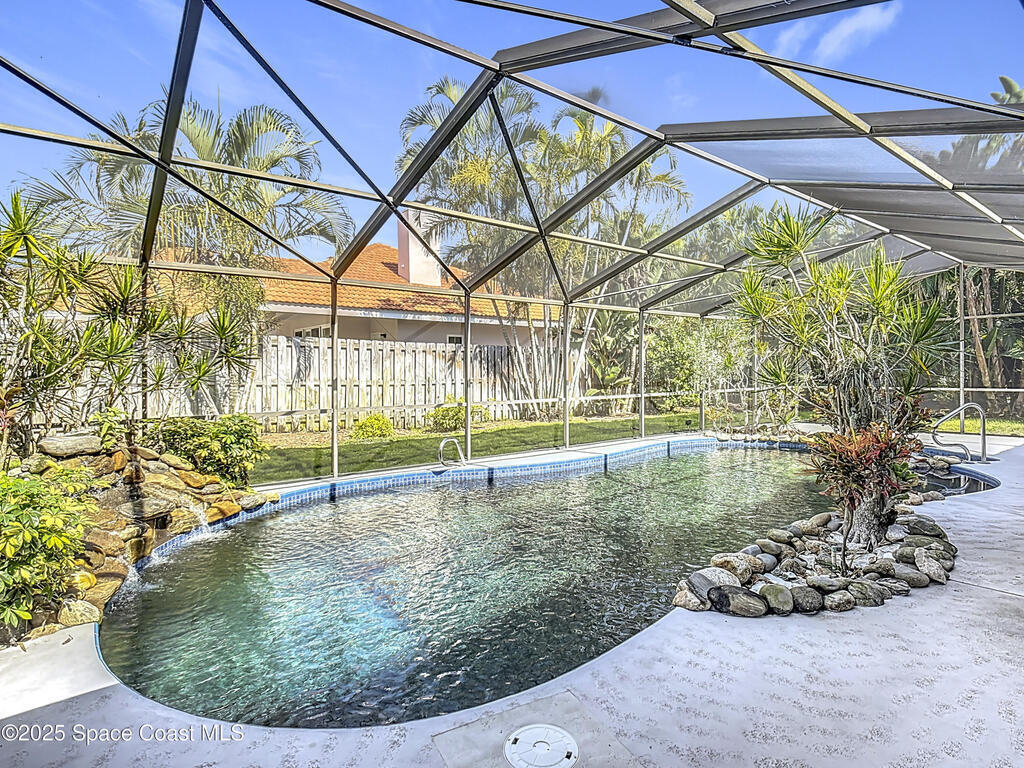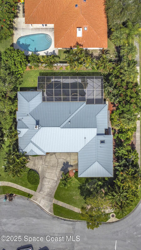 Stunning Beachside 4 Bedroom, 2 Bathroom Pool home in prestigious Rio Villa. Located on a quite Cul-de-Sac the Oversize corner lot is tropically landscaped, creating a private oasis that feels like a tropical island getaway! Close to both the Indian River and the Beach, as well as local shopping and dining, This home is in the perfect location to enjoy the beachside lifestyle. The fully screened pool area is a tropical retreat! The custom pool features a spa and rock waterfall, plus a large covered Lania. Inside features tile throughout the home, a Large Living room with soaring ceilings and a rock wall fireplace, Amazing custom kitchen with pool passthrough and custom island, Large dining room and family room, crown moldings and tray ceilings, a fantastic primary suite with his and hers walk in closets plus 3 additional bedrooms, all with walk in closets, large laundry room and a 2 car garage. Don't miss this one! Schedule your showing today. '21 Metal Roof, '18 A/C