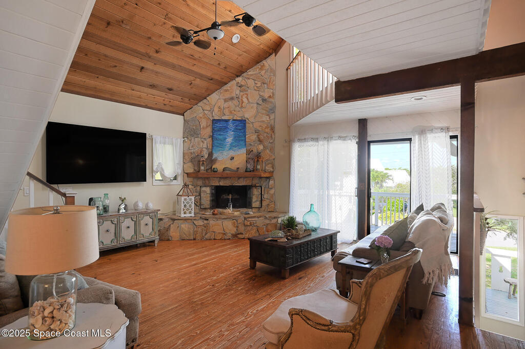 Fall in love with this sprawling, three story key west style home that has endless square footage and a pretty river view. As you enter into the living room you will notice the wood floors and high vaulted ceiling with large living area plus dining room. Enter the spacious kitchen with center island, stainless steel appliances and quaint breakfast nook. The views from the many windows display the lush landscape and let an abundance of natural light flow in. On the top level is primary retreat with large walk in closet and private balcony that has river view. 1st floor guest suite w/ 1 bedroom plus bath, wet bar, family room w/ slider leading to spacious covered lanai and huge backyard with room for pool. Big 2 garage w/ tall ceilings for extra storage. Enjoy direct ocean access w/ covered pavilion/picnic table + staircase to the sandy beach. Walk to community river park that offers fishing on community pier and watching sunsets with kayak storage offered and a playground to play.