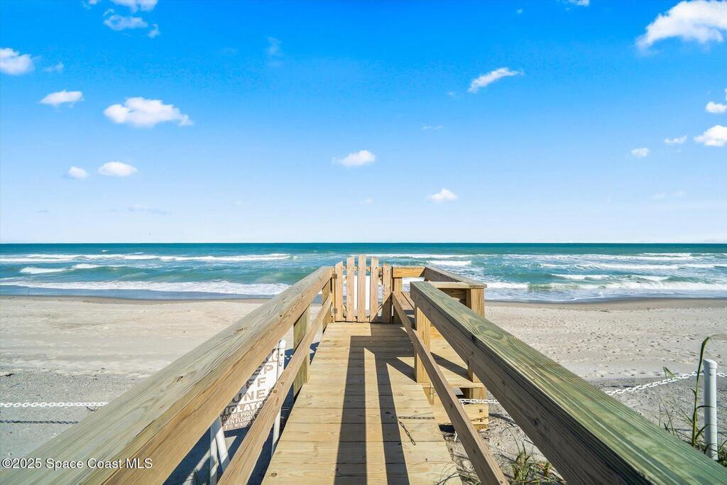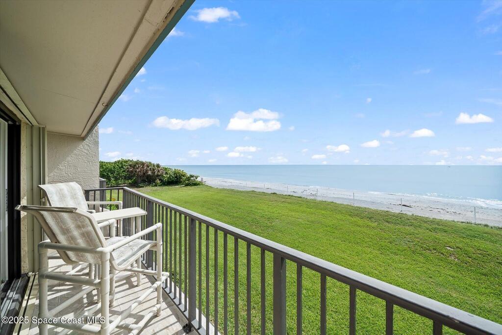 Direct Oceanfront season rental. Minimum 4 months from November through February. October is optional, making a total of 5 months. Spend the season right on the sand in this rare oceanfront townhome. No upstairs neighbors, just sweeping Atlantic views from your balcony and patio. Two ensuite bedrooms, a private garage, and a heated community pool make beachside living effortless, with dining, shopping, and Cocoa Beach only minutes away.