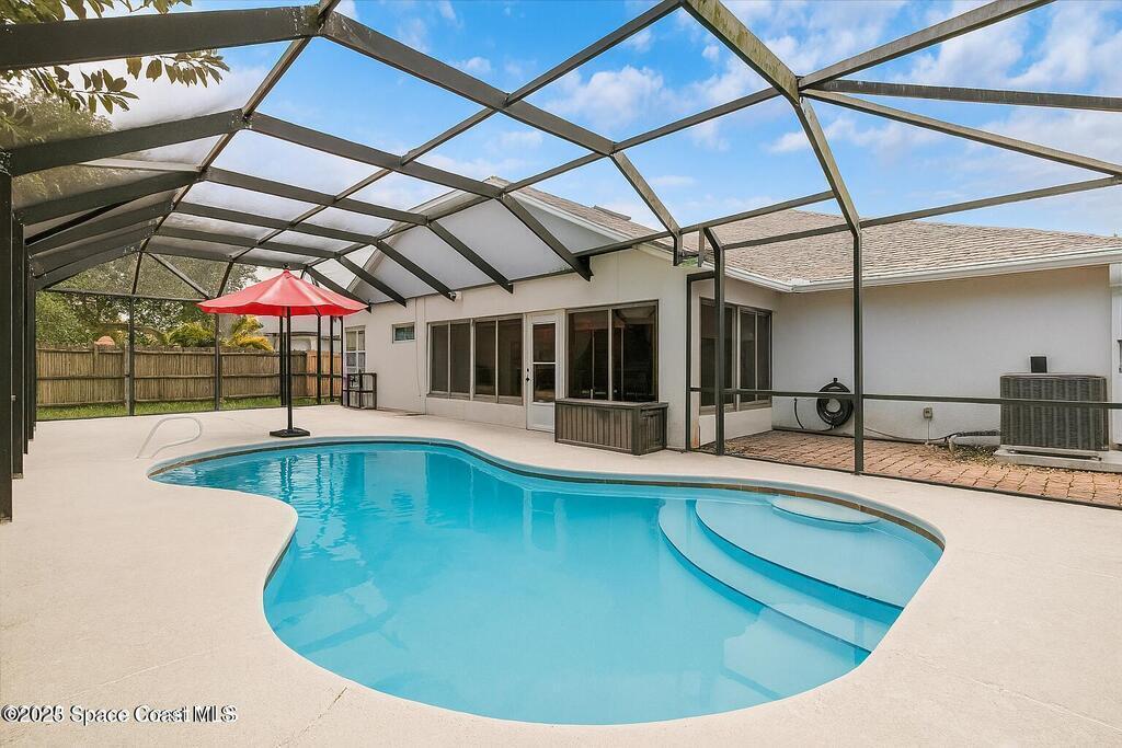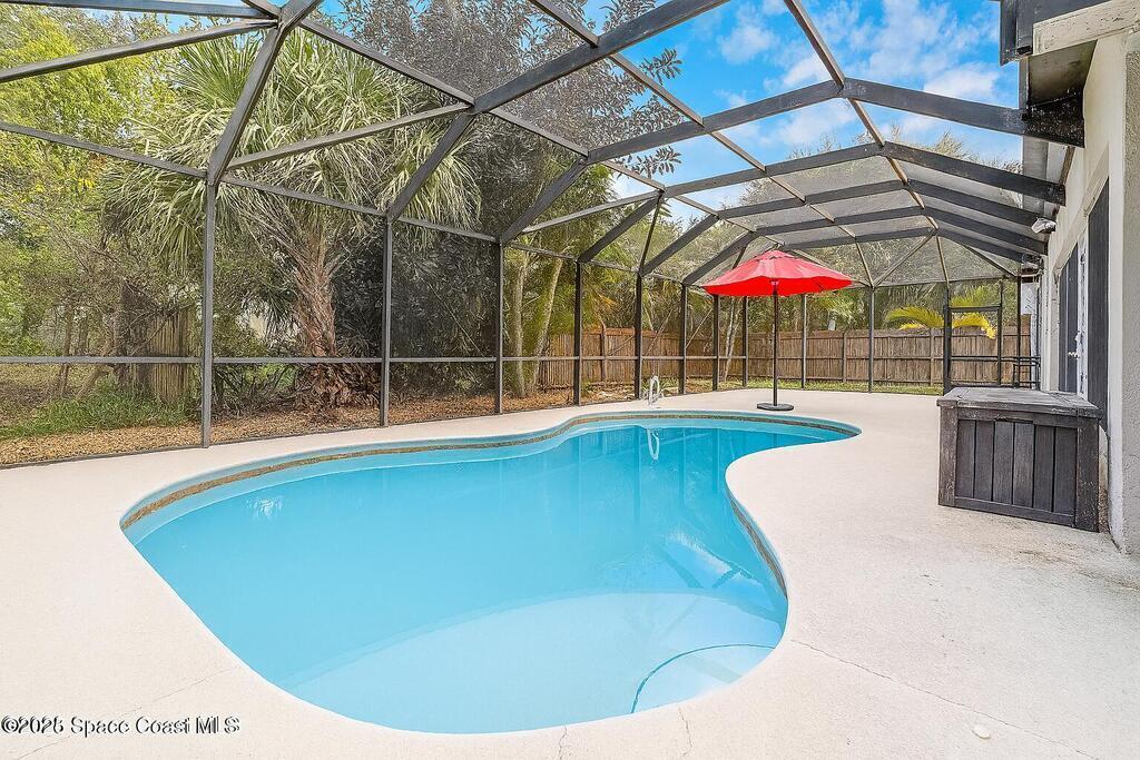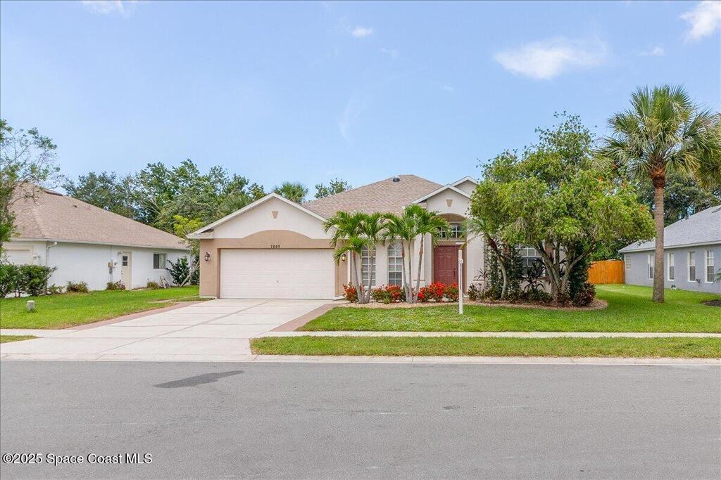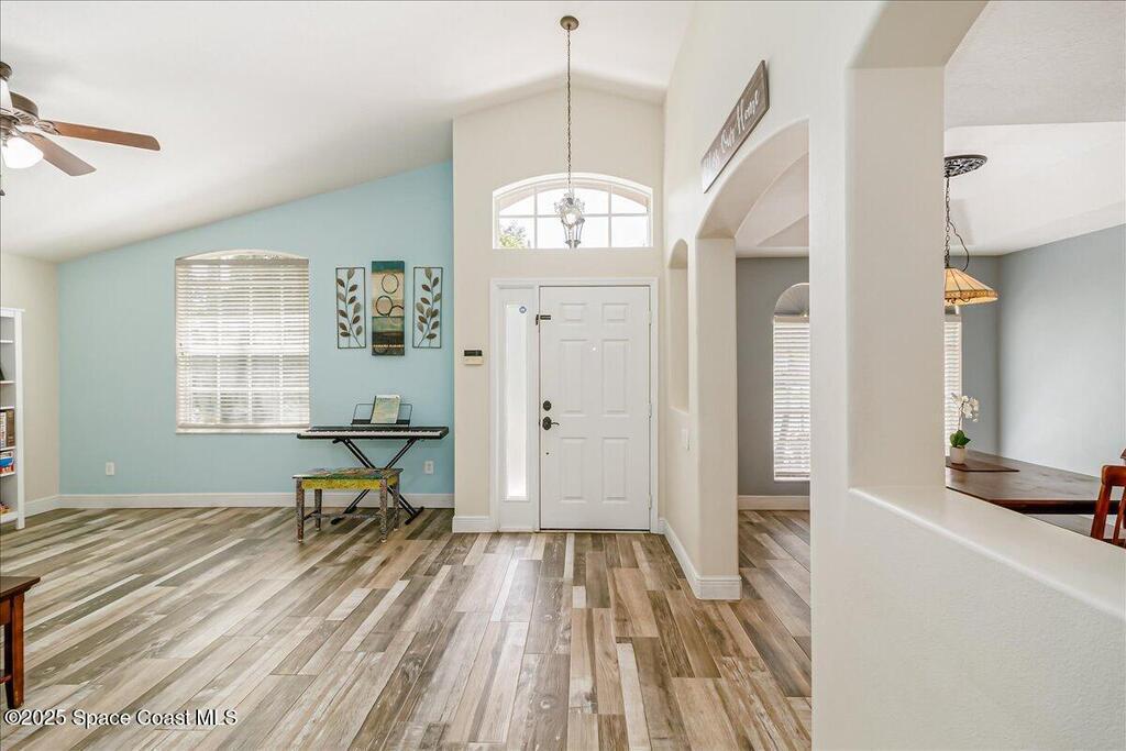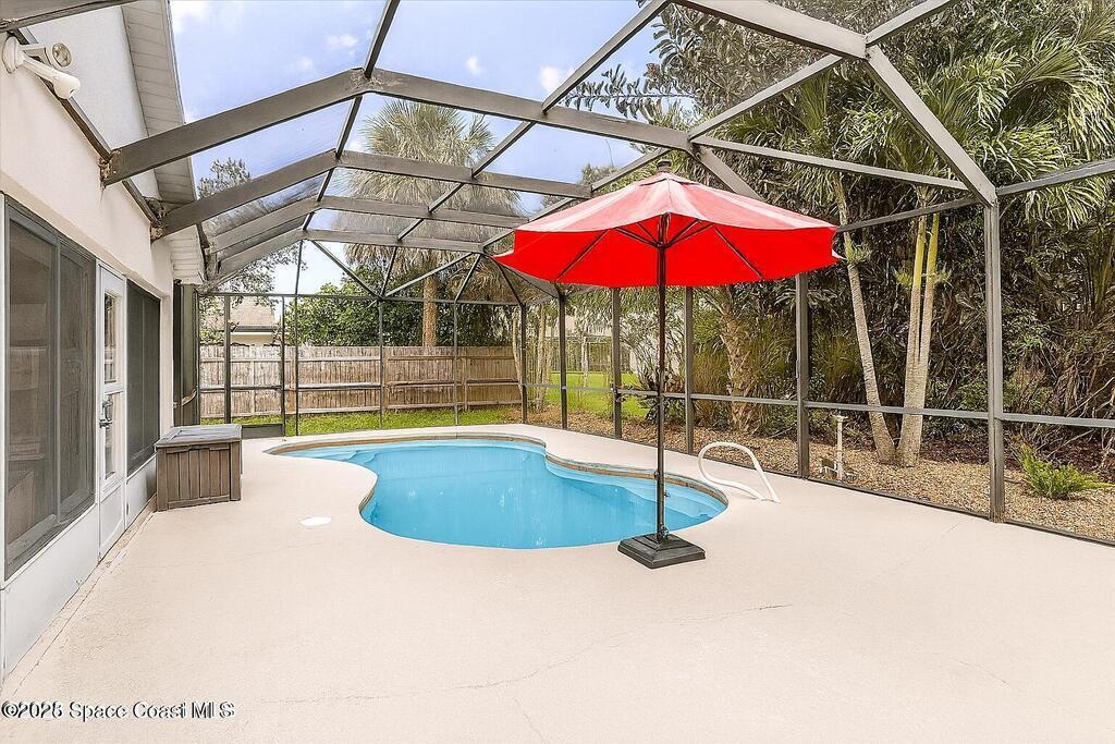 3.87% Assumable mortgage! This beautifully maintained Mercedes-built 4-bedroom pool home in the Westbrooke community of West Melbourne. As you enter, you're greeted by a spacious flex room and a formal dining area with elegant tray ceiling. The updated kitchen features 42'' cabinets, Corian countertops, soft-close dovetail drawers, and plenty of storage. Gorgeous tile wood-look plank flooring flows throughout, accented by 6'' baseboards. Overhead, a 2024 architectural shingle roof, New gutters, solar tube & 2025 Air Conditioning offer modern efficiency. The home includes a 2020 water heater & updated vanities Enjoy the split floor plan for privacy and a large tiled porch under air--perfect for year-round relaxation. Step outside to a stunning freeform pool with screen enclosure, and a baby pool gate for added safety. A paver patio ideal for summer grilling. Ample space for entertaining. This move-in ready home blends comfort, style, and function in one perfect package.