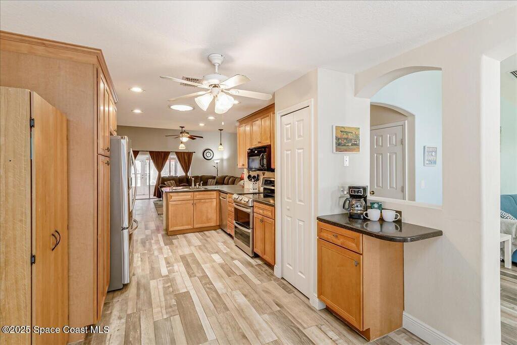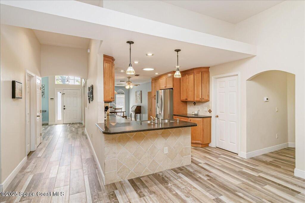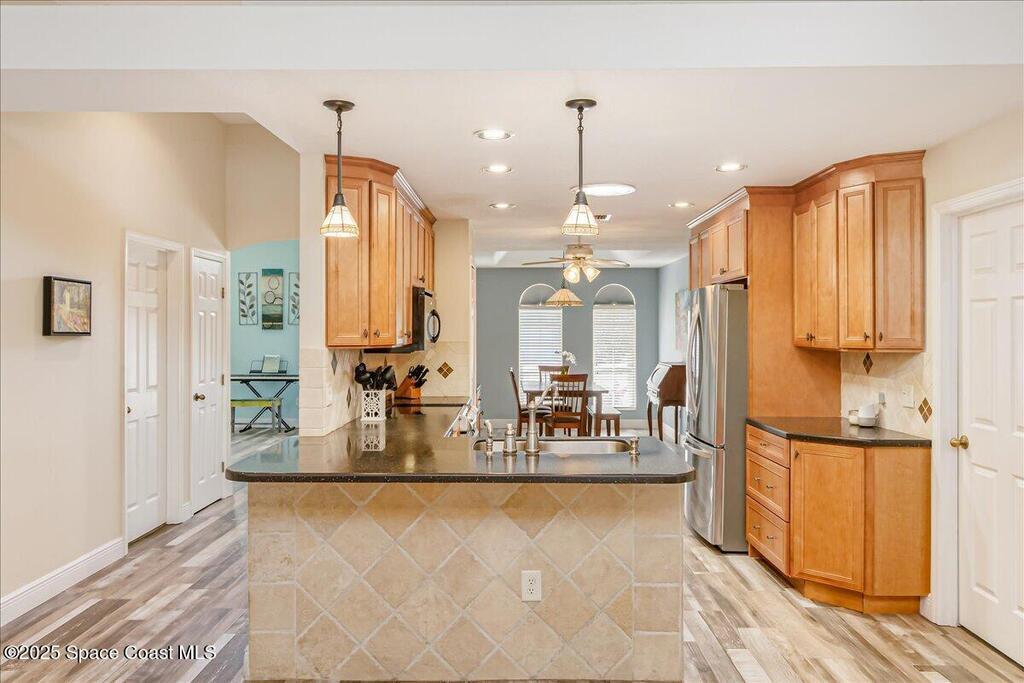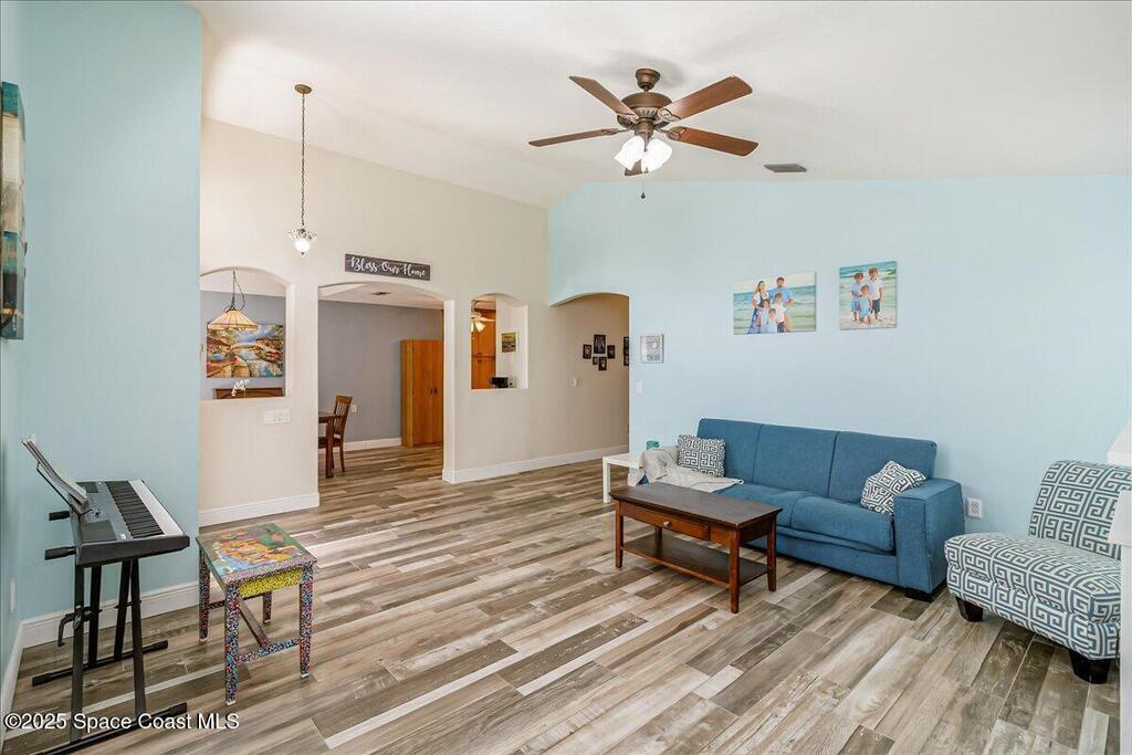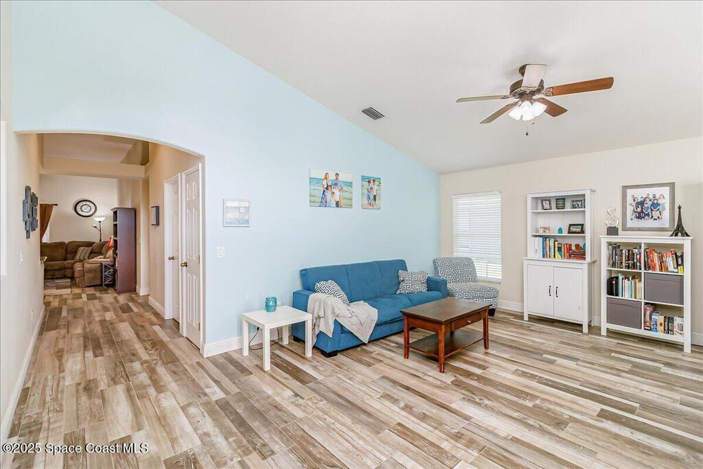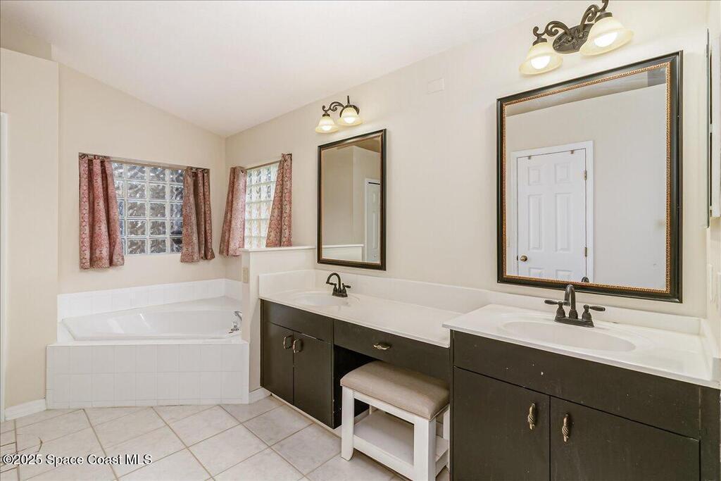 3.87% Assumable mortgage! This beautifully maintained Mercedes-built 4-bedroom pool home in the Westbrooke community of West Melbourne. As you enter, you're greeted by a spacious flex room and a formal dining area with elegant tray ceiling. The updated kitchen features 42'' cabinets, Corian countertops, soft-close dovetail drawers, and plenty of storage. Gorgeous tile wood-look plank flooring flows throughout, accented by 6'' baseboards. Overhead, a 2024 architectural shingle roof, New gutters, solar tube & 2025 Air Conditioning offer modern efficiency. The home includes a 2020 water heater & updated vanities Enjoy the split floor plan for privacy and a large tiled porch under air--perfect for year-round relaxation. Step outside to a stunning freeform pool with screen enclosure, and a baby pool gate for added safety. A paver patio ideal for summer grilling. Ample space for entertaining. This move-in ready home blends comfort, style, and function in one perfect package.