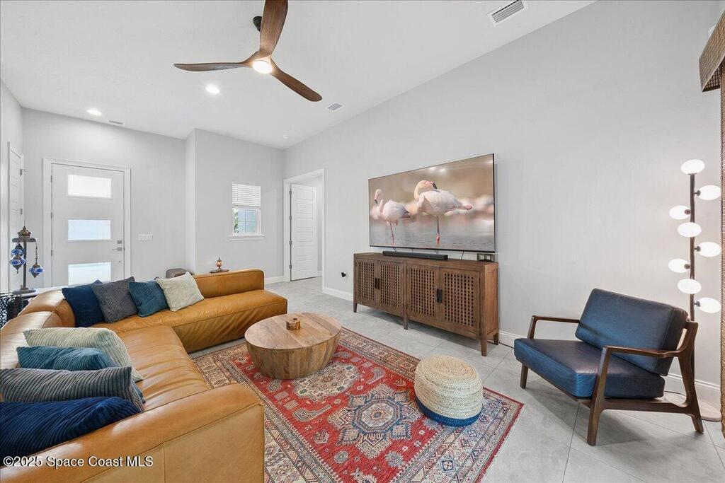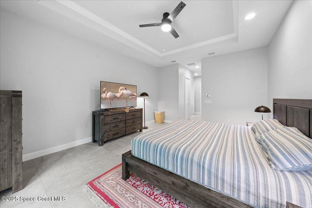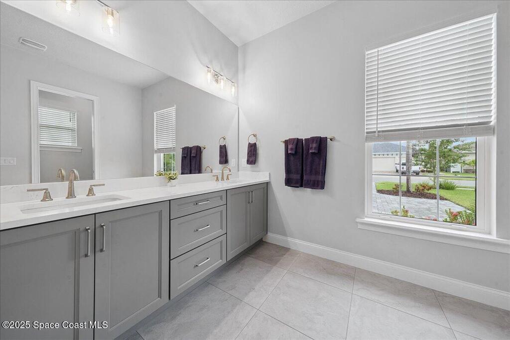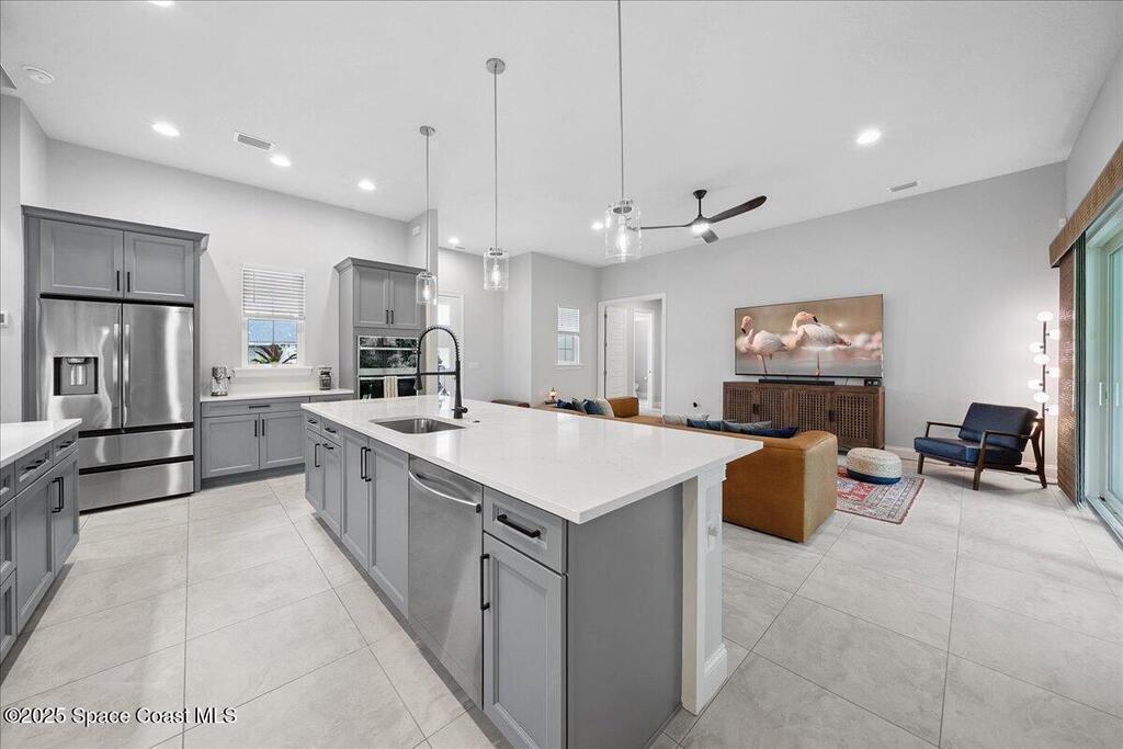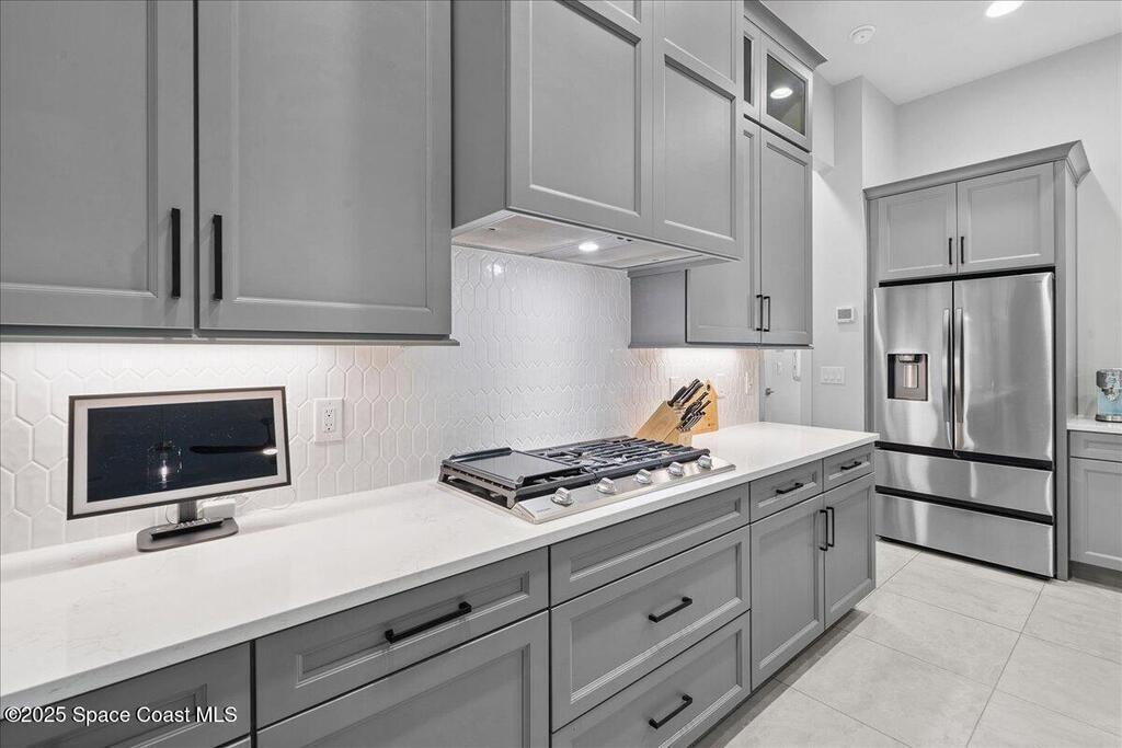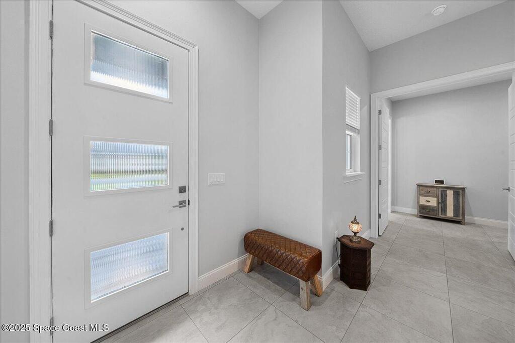 Modern, refined, and packed with upgrades! Located in the prestigious gated community of Laguna Village, this 2023 showstopper of a home is better than new. You'll be greeted by lush, designer landscaping and a beautiful paver driveway as you make your way into the 3 car garage with upgraded shark coating floors. As you step inside, you'll notice this chic home features 10' ceilings, elegant tile flooring, 8' doors, and upgraded window treatments throughout. The chef's kitchen impresses with quartz countertops, upgraded cabinetry, stainless steel appliances, and a natural gas range. Each bedroom includes its own private bath, while the primary suite offers a stunning 11' tray ceiling with crown molding and dual walk-in closets. Expansive sliding glass doors open to a covered patio and yard, pre-plumbed for a summer kitchen--ideal for entertaining. Laguna Village is just minutes away from the beaches, Historic Downtown Melbourne, shopping, dining, and major local employers.