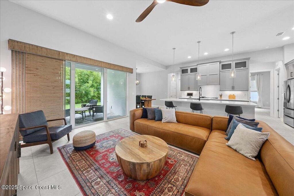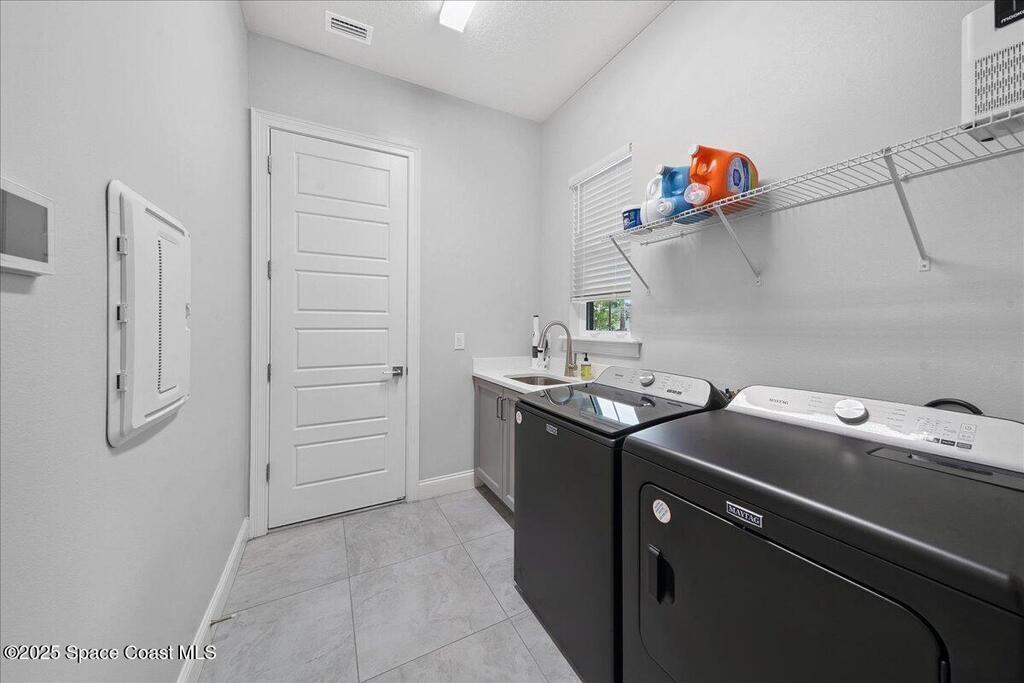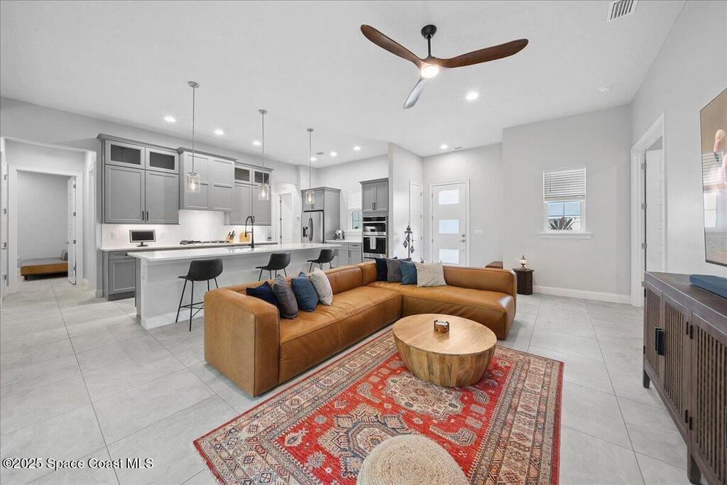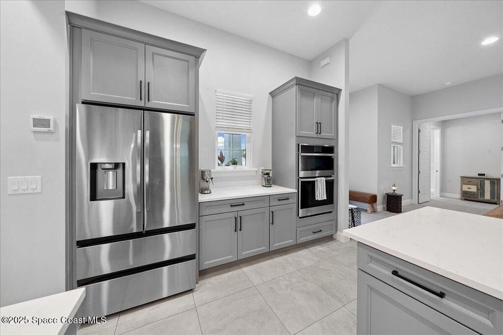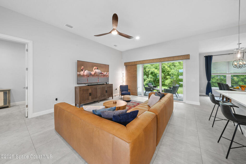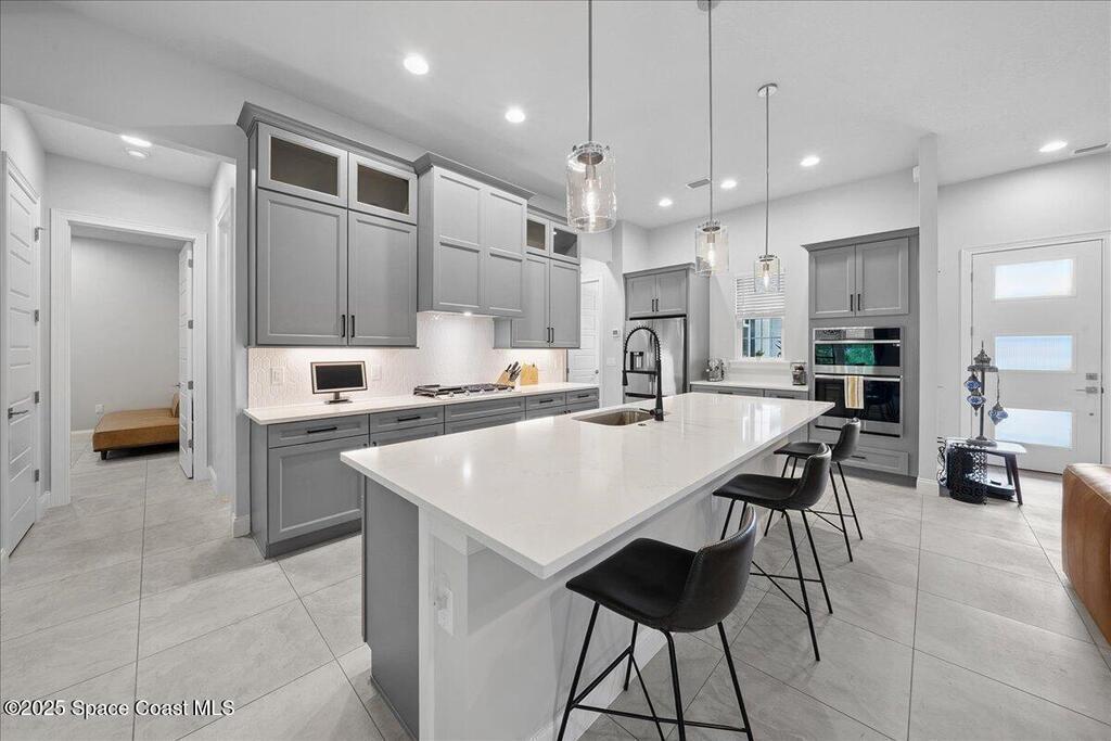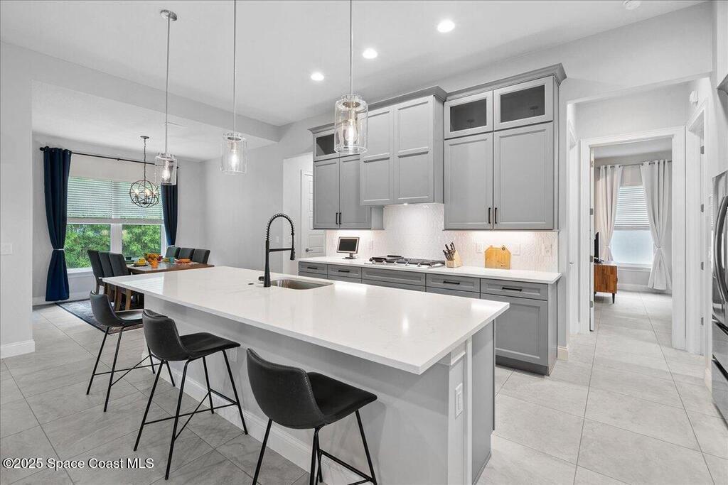 Modern, refined, and packed with upgrades! Located in the prestigious gated community of Laguna Village, this 2023 showstopper of a home is better than new. You'll be greeted by lush, designer landscaping and a beautiful paver driveway as you make your way into the 3 car garage with upgraded shark coating floors. As you step inside, you'll notice this chic home features 10' ceilings, elegant tile flooring, 8' doors, and upgraded window treatments throughout. The chef's kitchen impresses with quartz countertops, upgraded cabinetry, stainless steel appliances, and a natural gas range. Each bedroom includes its own private bath, while the primary suite offers a stunning 11' tray ceiling with crown molding and dual walk-in closets. Expansive sliding glass doors open to a covered patio and yard, pre-plumbed for a summer kitchen--ideal for entertaining. Laguna Village is just minutes away from the beaches, Historic Downtown Melbourne, shopping, dining, and major local employers.