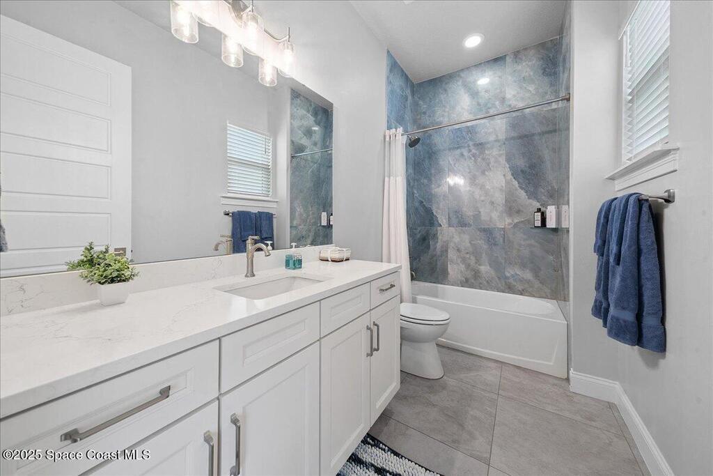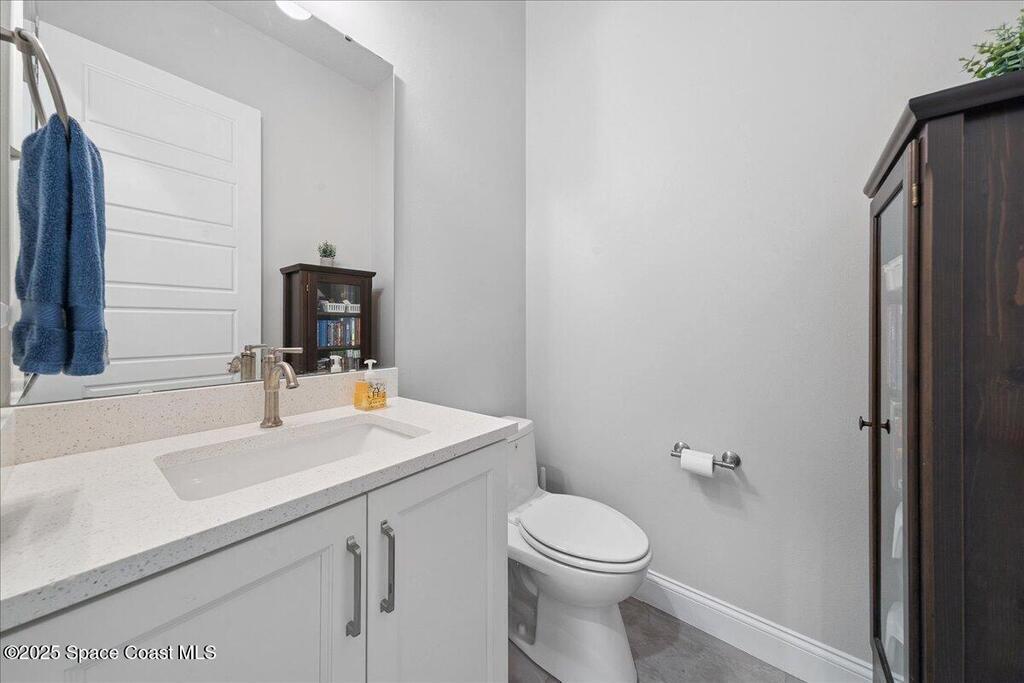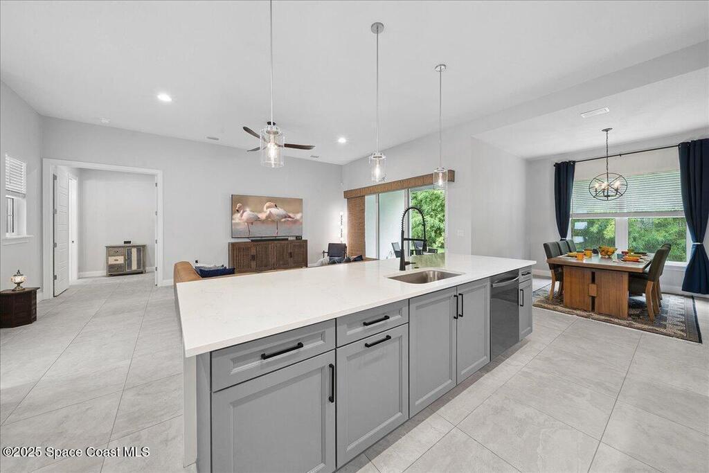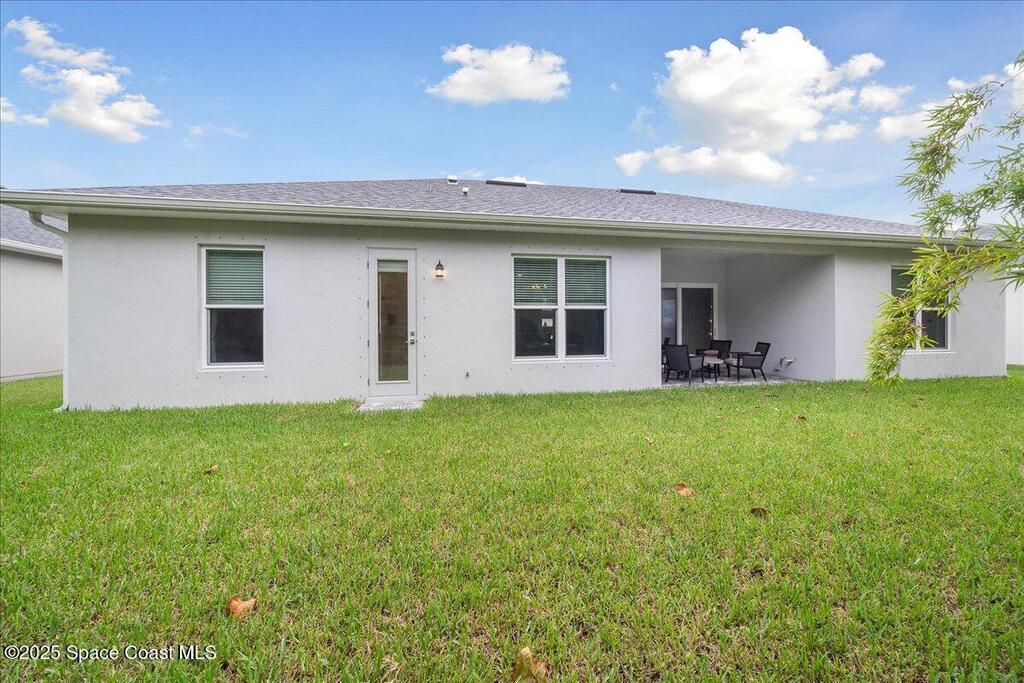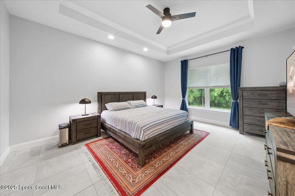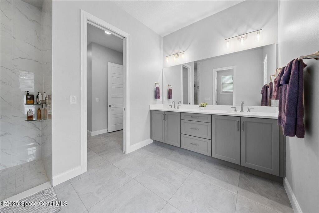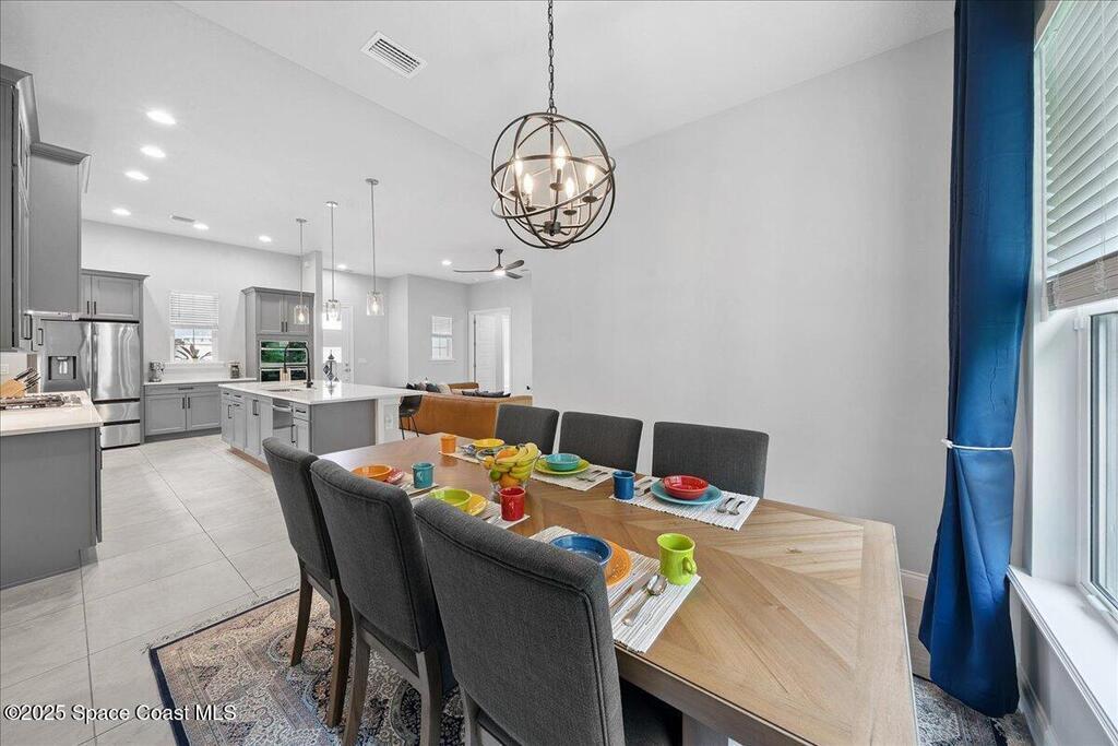 Modern, refined, and packed with upgrades! Located in the prestigious gated community of Laguna Village, this 2023 showstopper of a home is better than new. You'll be greeted by lush, designer landscaping and a beautiful paver driveway as you make your way into the 3 car garage with upgraded shark coating floors. As you step inside, you'll notice this chic home features 10' ceilings, elegant tile flooring, 8' doors, and upgraded window treatments throughout. The chef's kitchen impresses with quartz countertops, upgraded cabinetry, stainless steel appliances, and a natural gas range. Each bedroom includes its own private bath, while the primary suite offers a stunning 11' tray ceiling with crown molding and dual walk-in closets. Expansive sliding glass doors open to a covered patio and yard, pre-plumbed for a summer kitchen--ideal for entertaining. Laguna Village is just minutes away from the beaches, Historic Downtown Melbourne, shopping, dining, and major local employers.