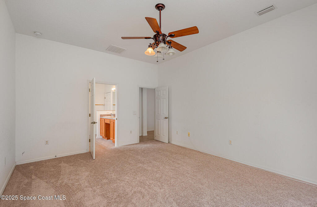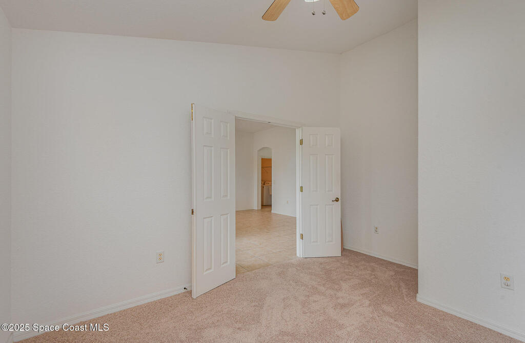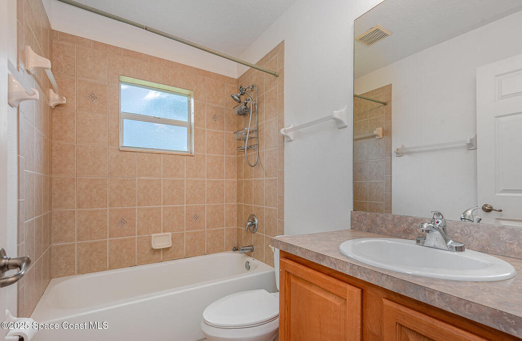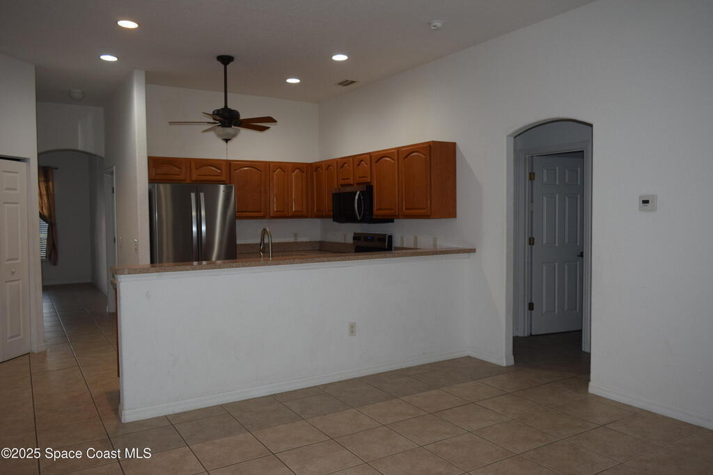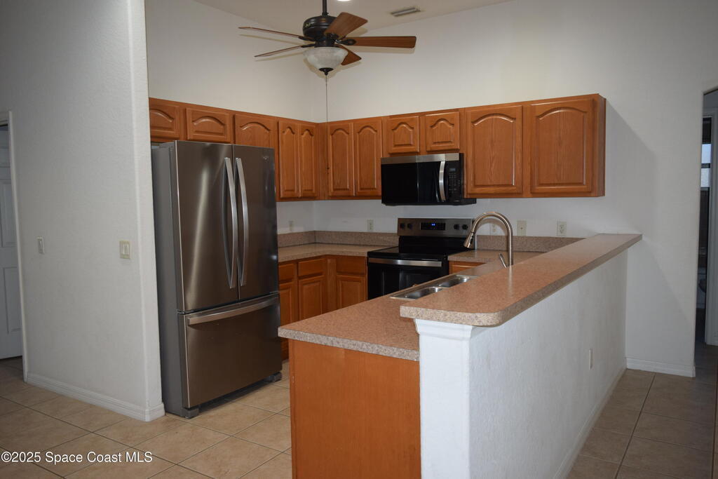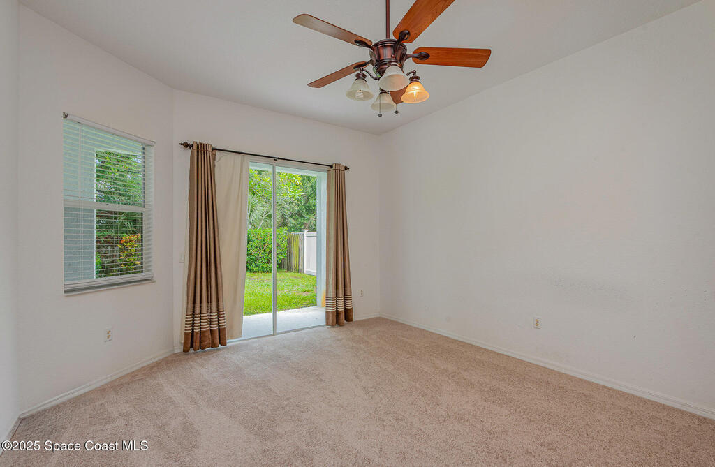 Seller just installed a brand new roof AND made a 20K price improvement! . Great location of this 4 bedroom, 2 bath home in desirable West Melbourne Whispering Winds Subdivision . Fourth bedroom is more condusive to home office but it has a closet so classified as bedroom. Open floor plan with spacious living and dining areas. Large kitchen with breakfast bar, all new SS appliances and bright eat-in nook with picture window. Primary suite offers walk-in closets, separate tub and shower. Inside laundry. Enjoy Florida living on the large trussed porch perfect for outdoor entertaining. A+ schools, close to shopping and major roads. Short drive to beaches. Don't miss out on this one, schedule your private showing today!