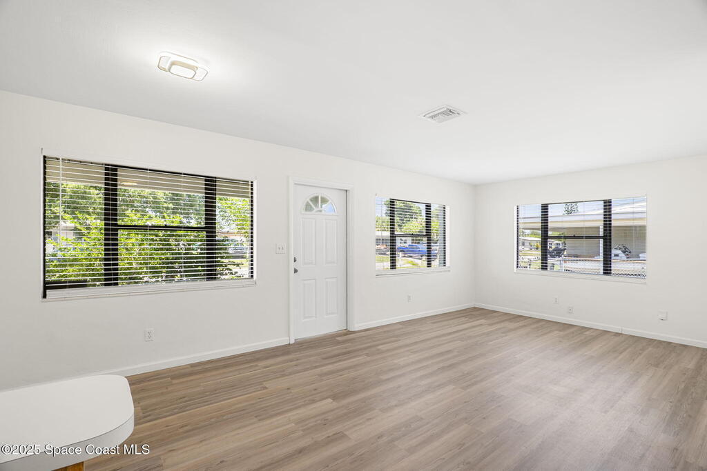 This charming, updated home is move-in ready and full of character! Inside, you'll find matching laminate flooring throughout, creating a seamless and modern look. Major upgrades include a 2022 A/C and ductwork, a 2017 main roof, and a 2023 secondary roof for added peace of mind. Conveniently located just 12 minutes from the beach and the lively Eau Gallie Arts District, and only 15 minutes to Downtown Melbourne--Enjoy the best of both worlds with easy access to the coast and all the amenities of Melbournes night life.Don't miss your chance to own this adorable home in a prime location!