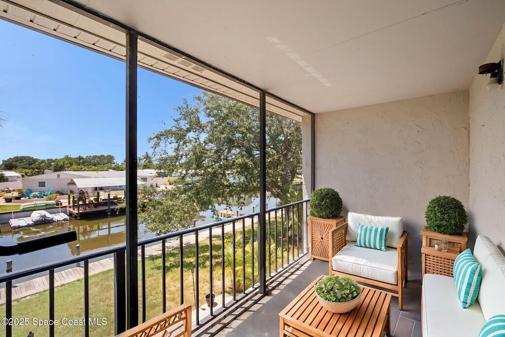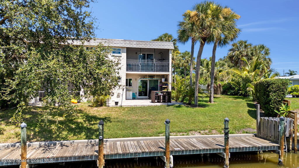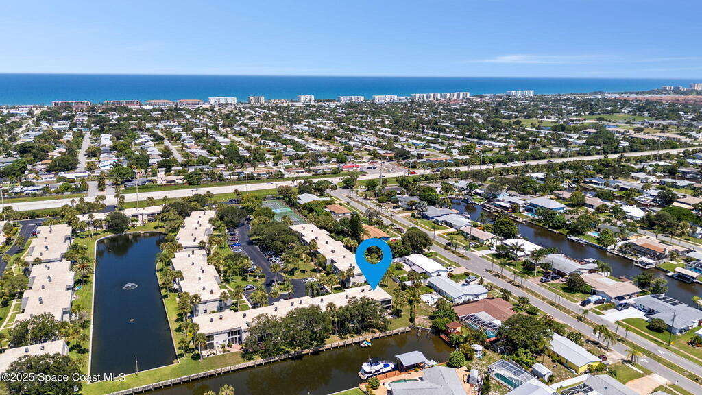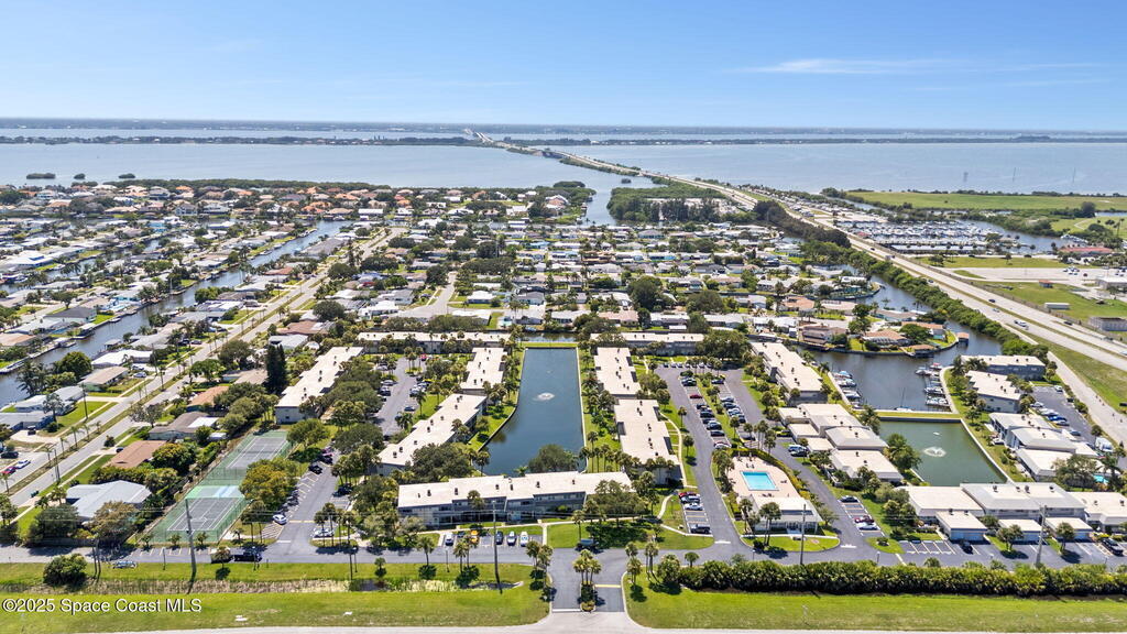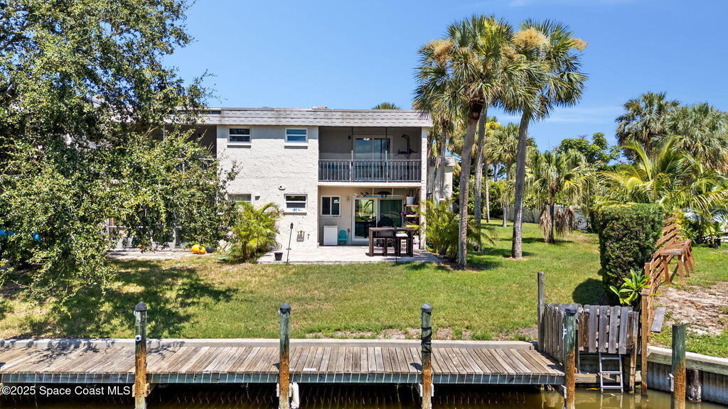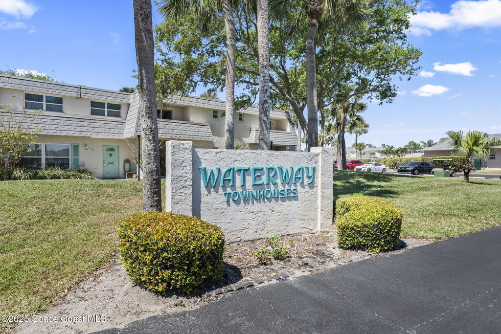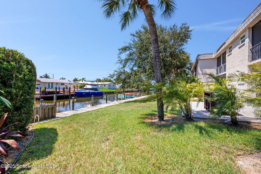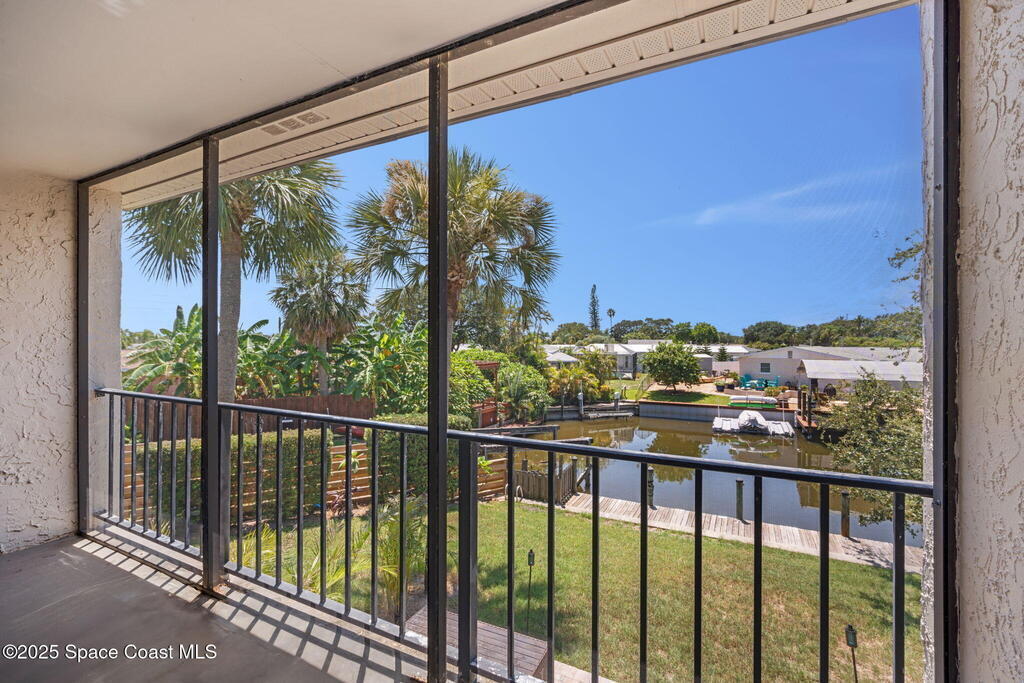 Rare end unit waterfront townhome in the coveted Waterway community of Satellite Beach with your own DEED BOAT SLIP just steps away. Enjoy direct access to navigable water leading to the Banana River and the full beauty of the Intracoastal Waterway right from your backyard. Soak in stunning canal views from your screened porch or take your boat out for a sunset cruise. Inside, the updated kitchen with quartz countertops flows into open living and dining spaces perfect for entertaining. Upstairs, two spacious bedrooms each have private baths for comfort and privacy. As an end unit, you also have an entire side yard with beautifully landscaped grass your kids can enjoy, along with extra light, added privacy, and only one shared wall. This property sits in unincorporated Satellite Beach which means significantly lower taxes while still being minutes from the beach, shopping, dining, and top rated schools. Community perks include a sparkling pool, tennis and basketball courts, and