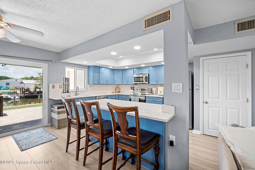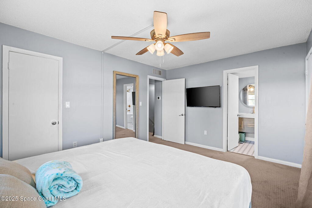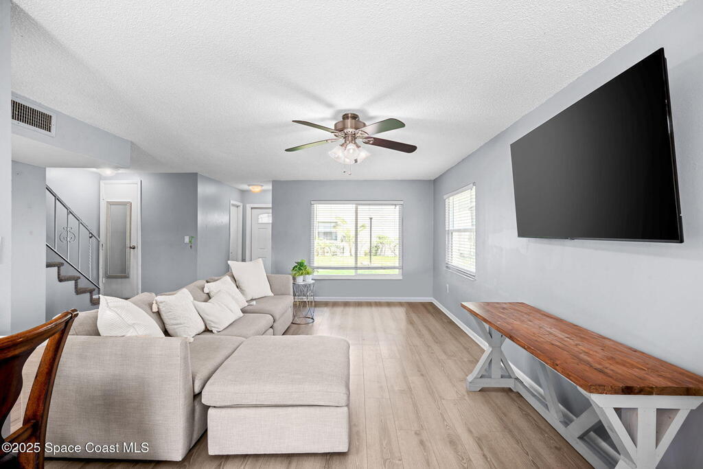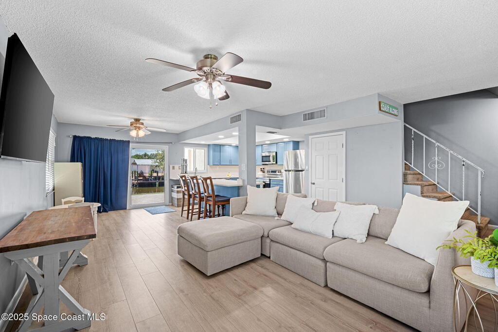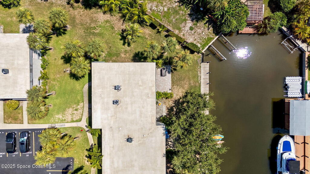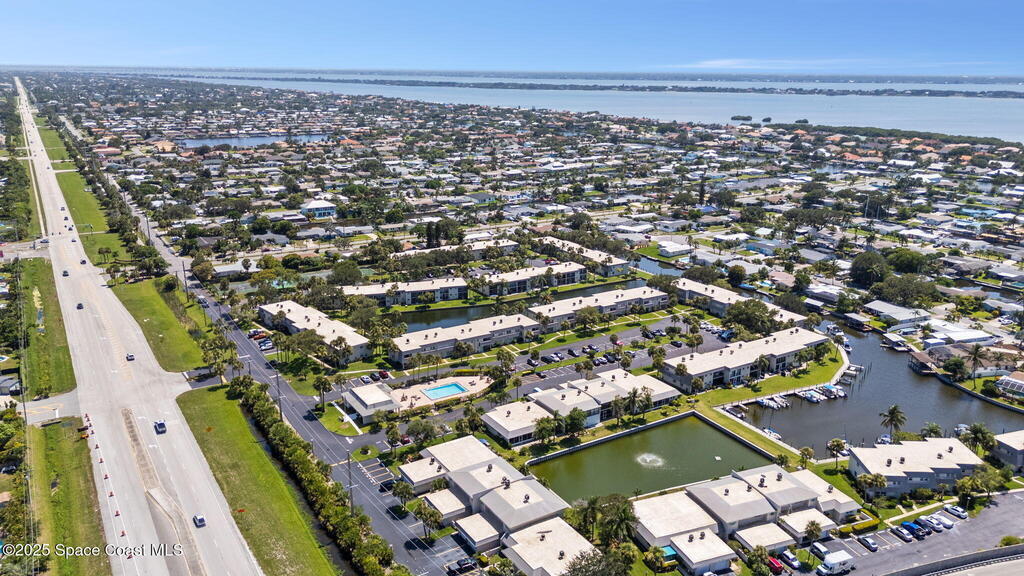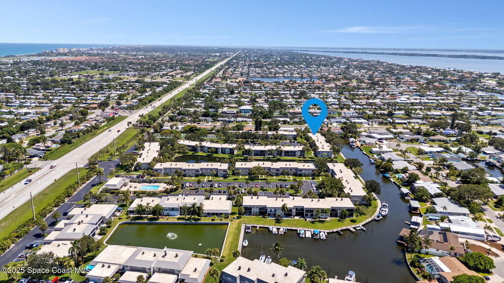 Rare end unit waterfront townhome in the coveted Waterway community of Satellite Beach with your own DEED BOAT SLIP just steps away. Enjoy direct access to navigable water leading to the Banana River and the full beauty of the Intracoastal Waterway right from your backyard. Soak in stunning canal views from your screened porch or take your boat out for a sunset cruise. Inside, the updated kitchen with quartz countertops flows into open living and dining spaces perfect for entertaining. Upstairs, two spacious bedrooms each have private baths for comfort and privacy. As an end unit, you also have an entire side yard with beautifully landscaped grass your kids can enjoy, along with extra light, added privacy, and only one shared wall. This property sits in unincorporated Satellite Beach which means significantly lower taxes while still being minutes from the beach, shopping, dining, and top rated schools. Community perks include a sparkling pool, tennis and basketball courts, and