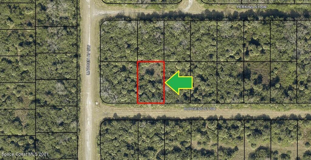 It's a 0.23 acre buildable residential lot available in Port Malabar Unit #49 of Palm Bay. Located in the southwest section, this lot is just 1.4 miles - 4 minutes to Bayside High School, 2.7 miles - 7 minutes to the Publix Supermarket, 14.3 miles - 30 minutes to Melbourne Airport, and 20 miles - 35 minutes to the beaches of Indialantic. From exit #176 of I-95 go west on Palm Bay Road NE for .7 miles, left on Minton Road for 3.3 miles, right on Jupiter Boulevard for .1 mile, left on DeGroodt Road SW for 2.5 miles, right on JA Bombardier Boulevard for .9 miles, right on Madden Avenue for .2 miles, and right on Burgess Street. The lot will be on your left.